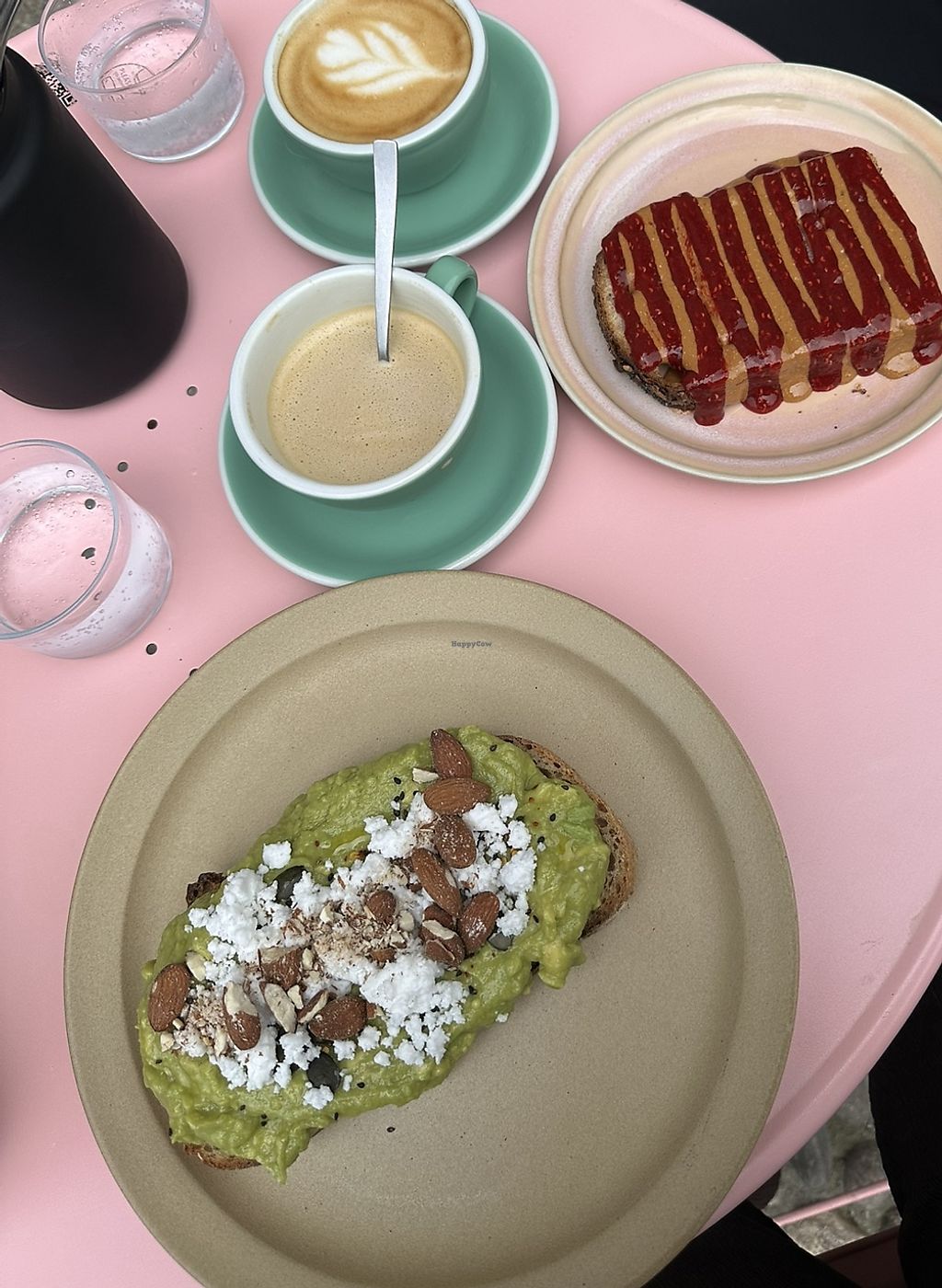 we went there two times during our trip, the waiter even recognized us! coffee is very good and many vegan food options available. we had the avo toast with veg feta and p&b bread, both was very good