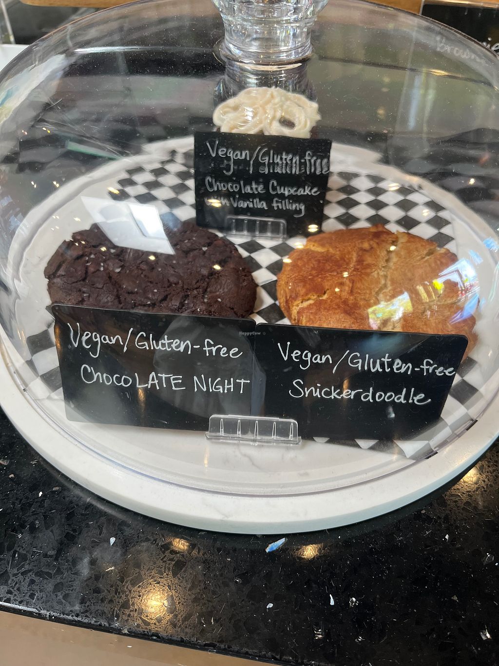 I had a vegan red velvet cookie that was to die for. Absolutely fresh & delicious. Had to stop myself from buying more but will definitely be back. They ran out of the vegan chocolate cupcakes, so need to try one, as well as their vegan lava cake next time. Super helpful & friendly staff, as well as a very clean restroom, which I think we all appreciate 🙂.