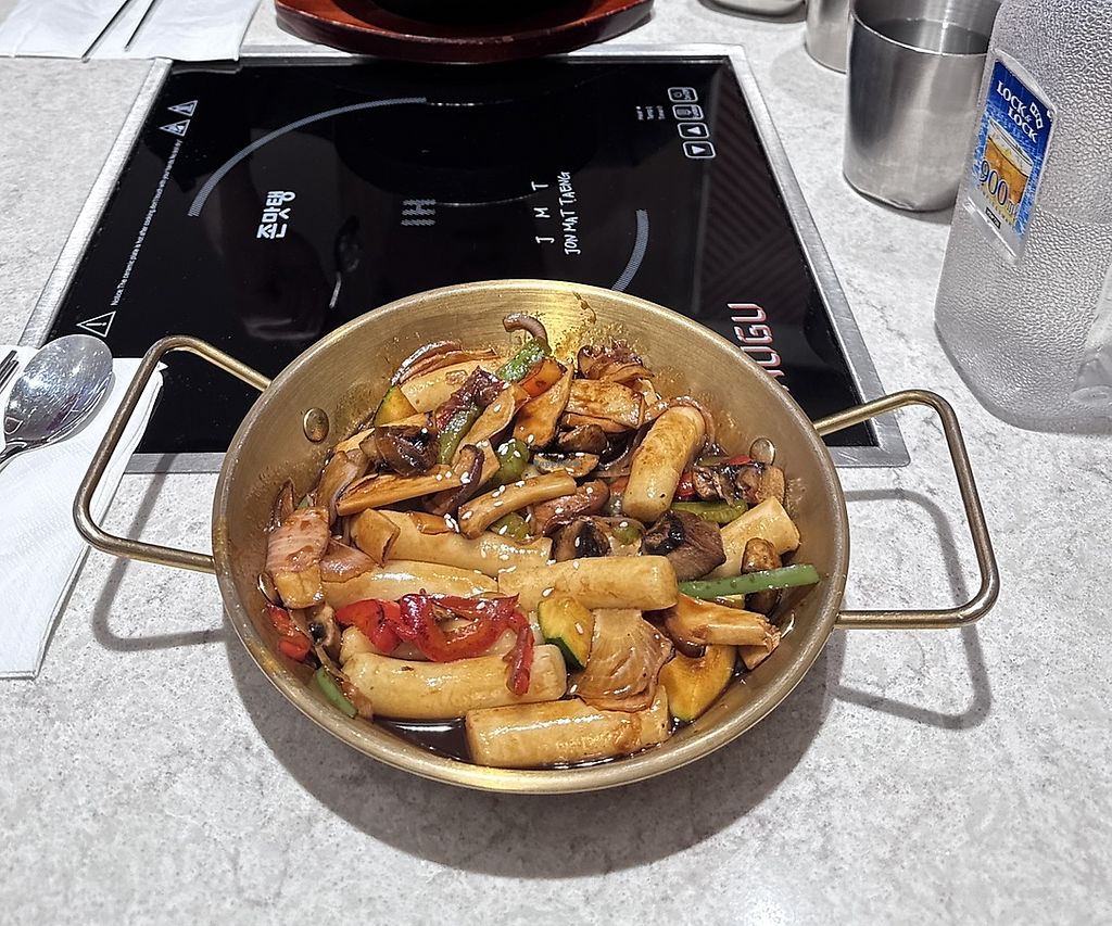 Serves meat, vegan options available. Korean restaurant with vegan choices. Menu includes vegetable bibimbap and tofu bibimbap (omit egg), tteokbokki and tofu nuggets. Open Mon-Wed 12:00pm-9:00pm, Thu-Sat 12:00pm-9:30pm, Sun 12:00pm-9:00pm.