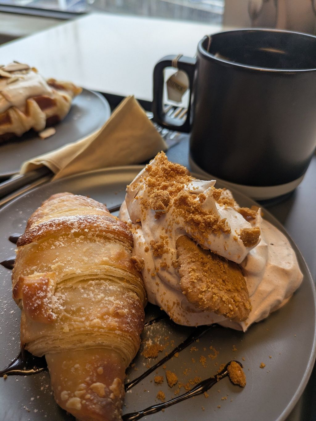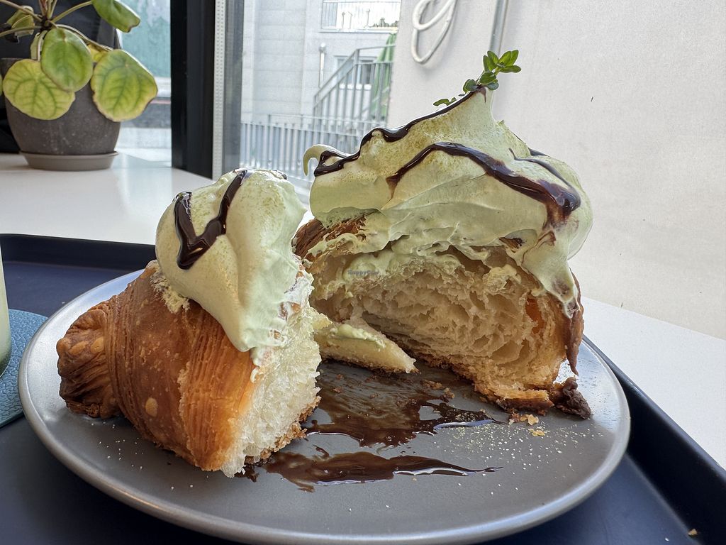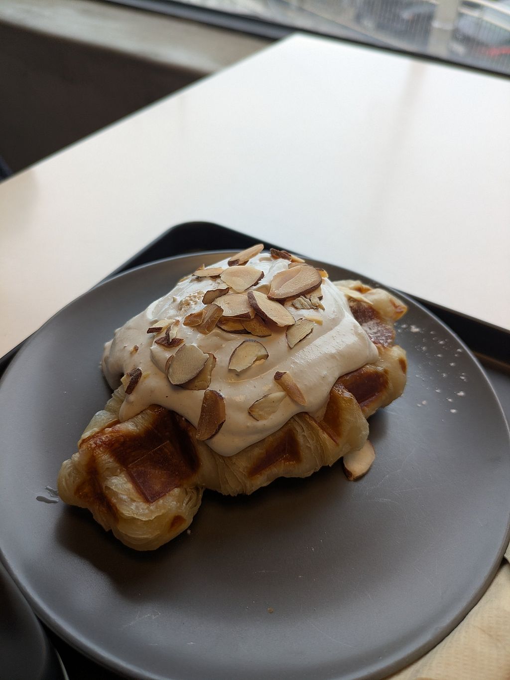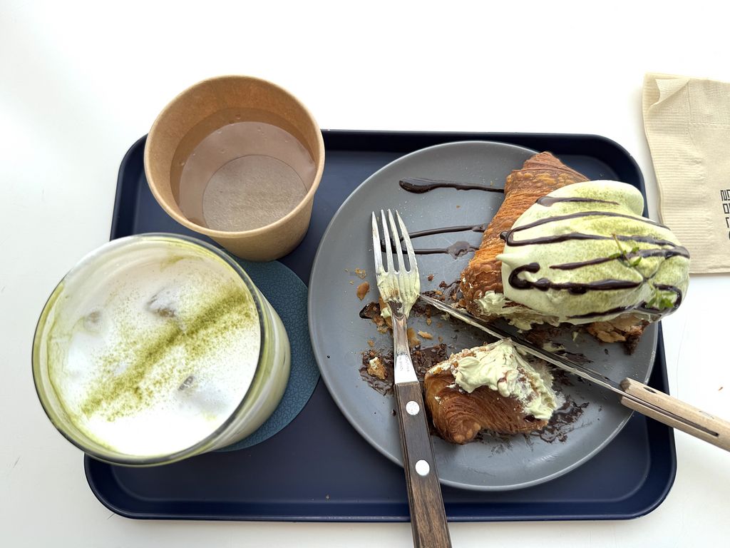 I tried a matcha croissant and a peanut cream croffle and both were amazing. The croffle (croissant pressed as a waffle) was definitely the star. Great place to fuel up before exploring the nearby palace.