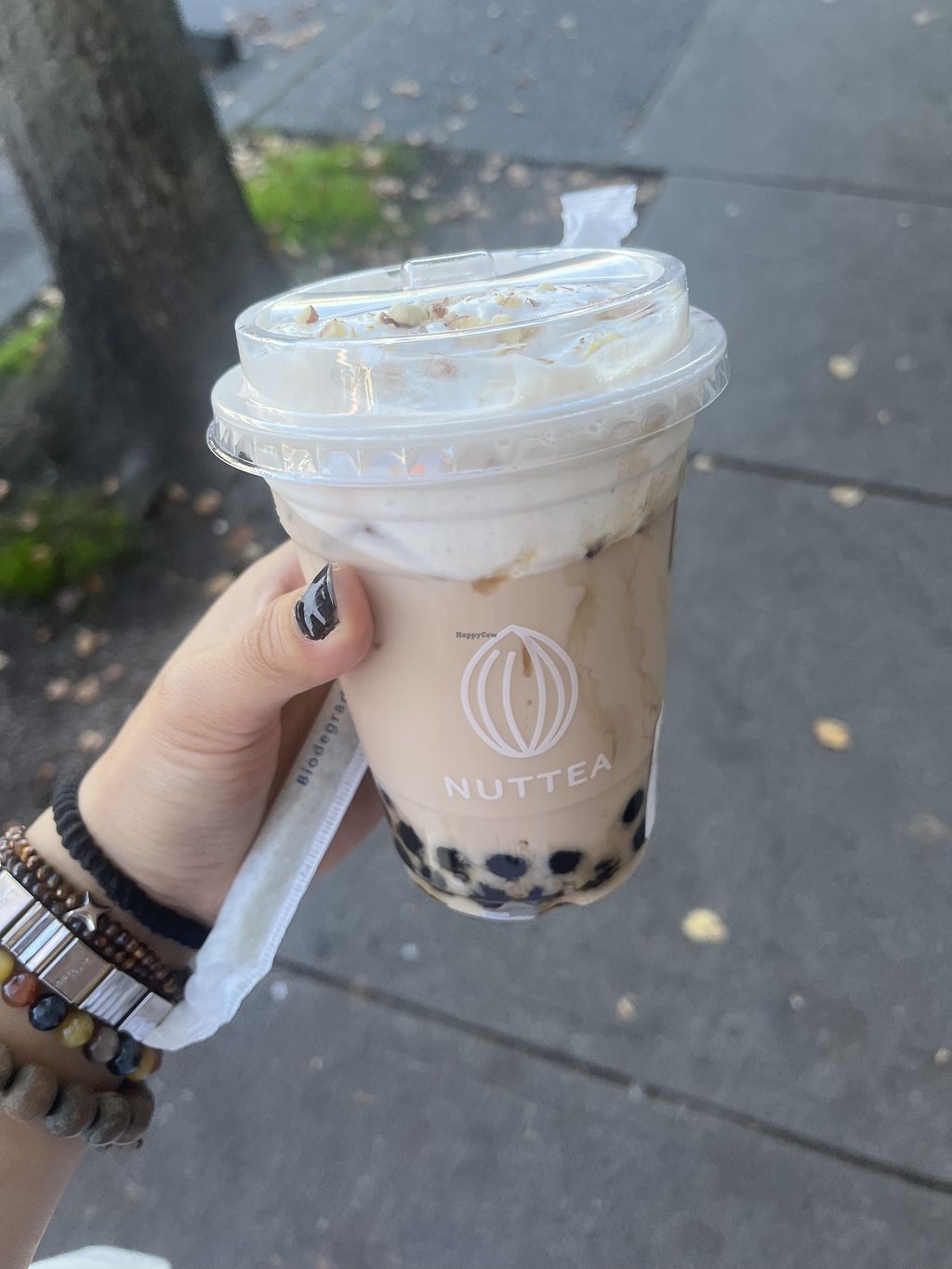 Descent boba with a nutty taste! Everything Nut! They have like a triple nut mix they use! They also have waffles!