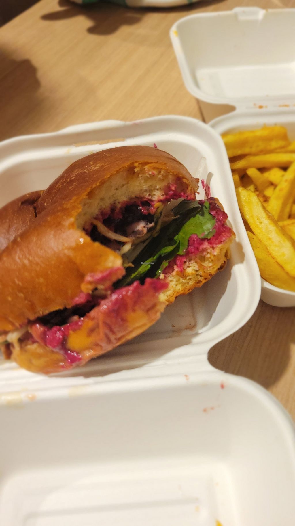Big and tasty vegan burgers with fries, super recommended!