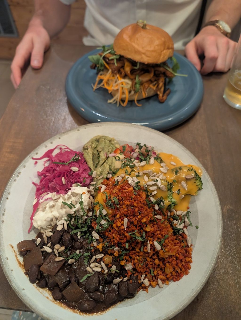 Tasty burgers 🍔 I had the kimchi 'KFC' burger and my boyfriend had the BBQ burger plus the cheesy broccoli was delicious. Fairly small inside which was nice and chilled.