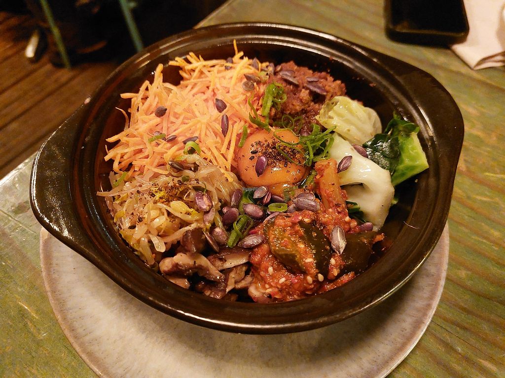 O Gambozino offers a great selection of tasty tapas meant to be shared. We had 5 dishes in total, and they were all quite good. I would highlight the bibimbap, with its "vegan egg" and the homemade ginger beer.