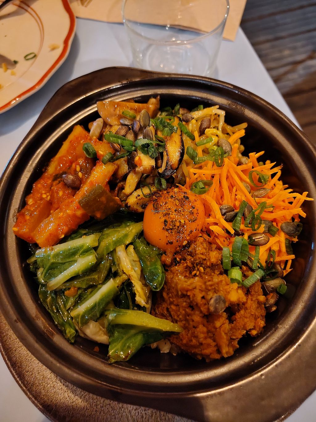 I tried the bibimbap because it was highly recommended, but it didn’t match the photos or my expectations. There was no broccoli, tofu, or onion—just a lot of pickled vegetables and an overwhelming sour taste, plus it seemed to be mostly filled with bulgur.