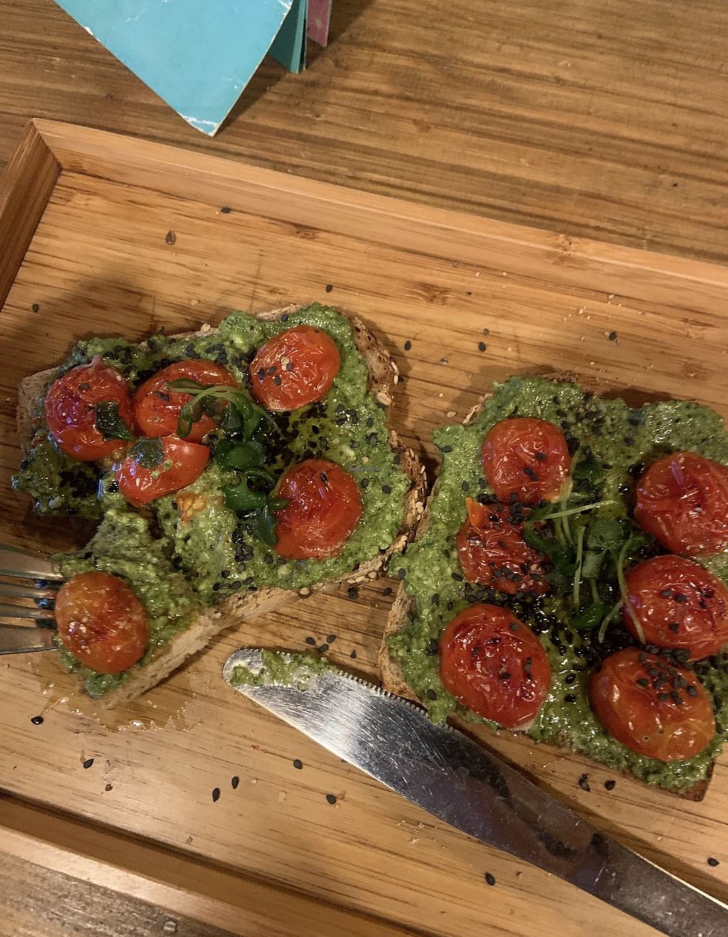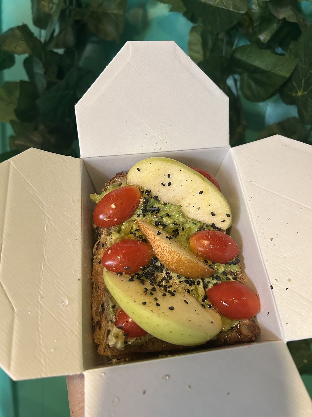I had the hummus toast, which with sliced pears on top. It was original but pretty good.