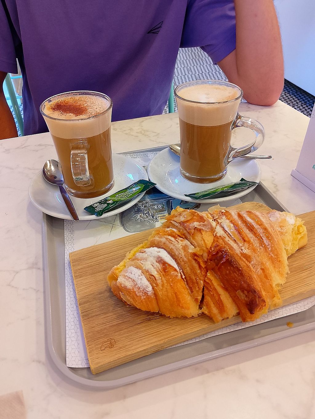 We went here three times. First time we ate the strawberry jam and apple cinnamon croissants directly outside with orange juice and it was delicious and a great start into the day. The second time we bought plain croissants for a day trip the next day and they were delicious but rather dry. The third time we bought apple cinnamon croissants in the evening for our flight home and these were delicious and not dry. So if you wanna buy these for the next day, make sure to buy them with filling.