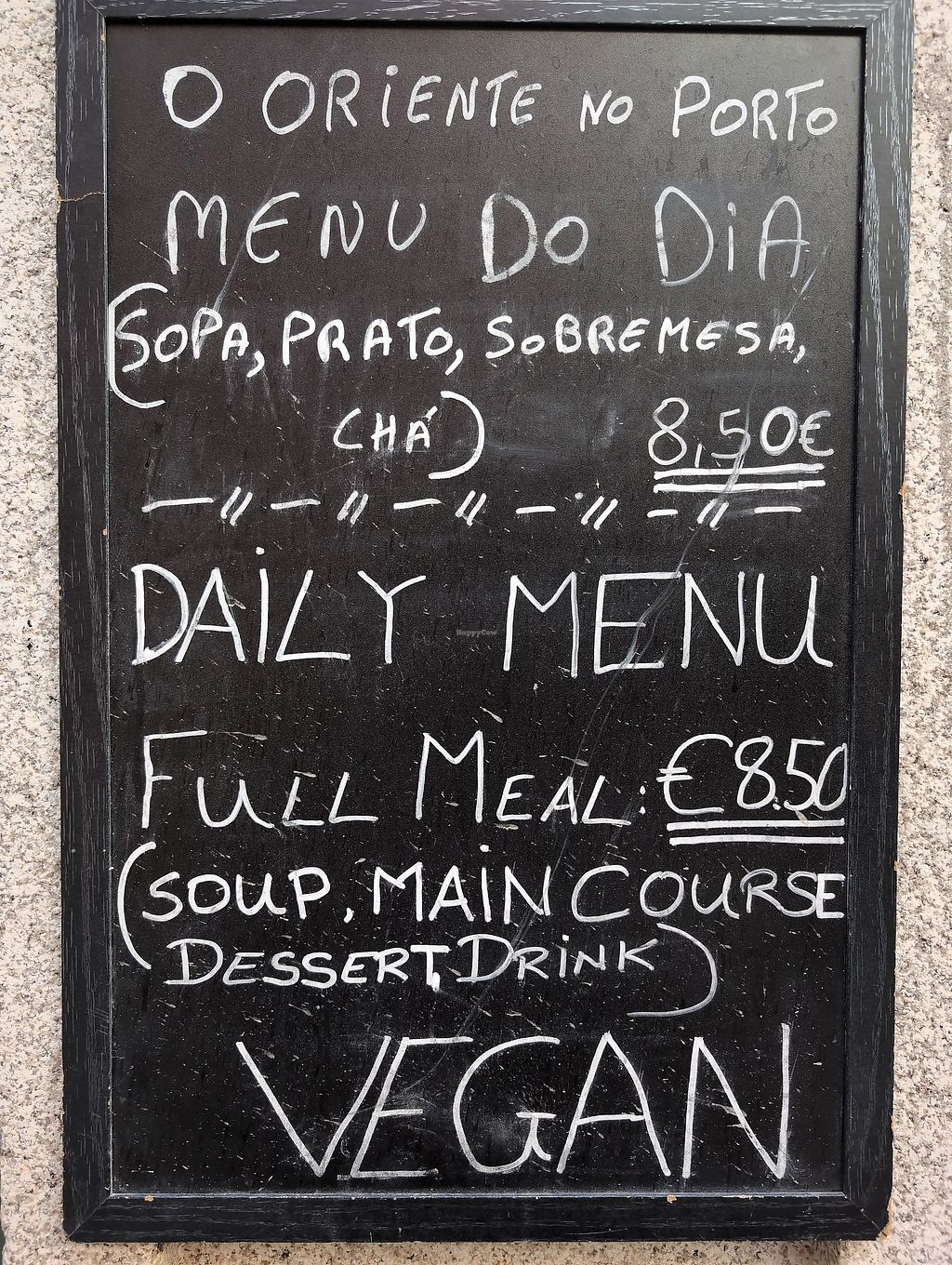 The daily menu costs 8,5€ now which is still less than anything in Cafe Majestic 🤣 delicious vegan food. I’ve had the daily Krishna set consisting of lentils soup, rice with veggies, mango cream and tea. They have a nice terrace, hidden from the hustle and bustle of Porto. I’ve been there multiple times: both for lunch and dinner menu. Francesinha is really tasty and fresh, the sauce is not some cheap ketchup as I’ve had in another place. Really welcoming place with good food in good price