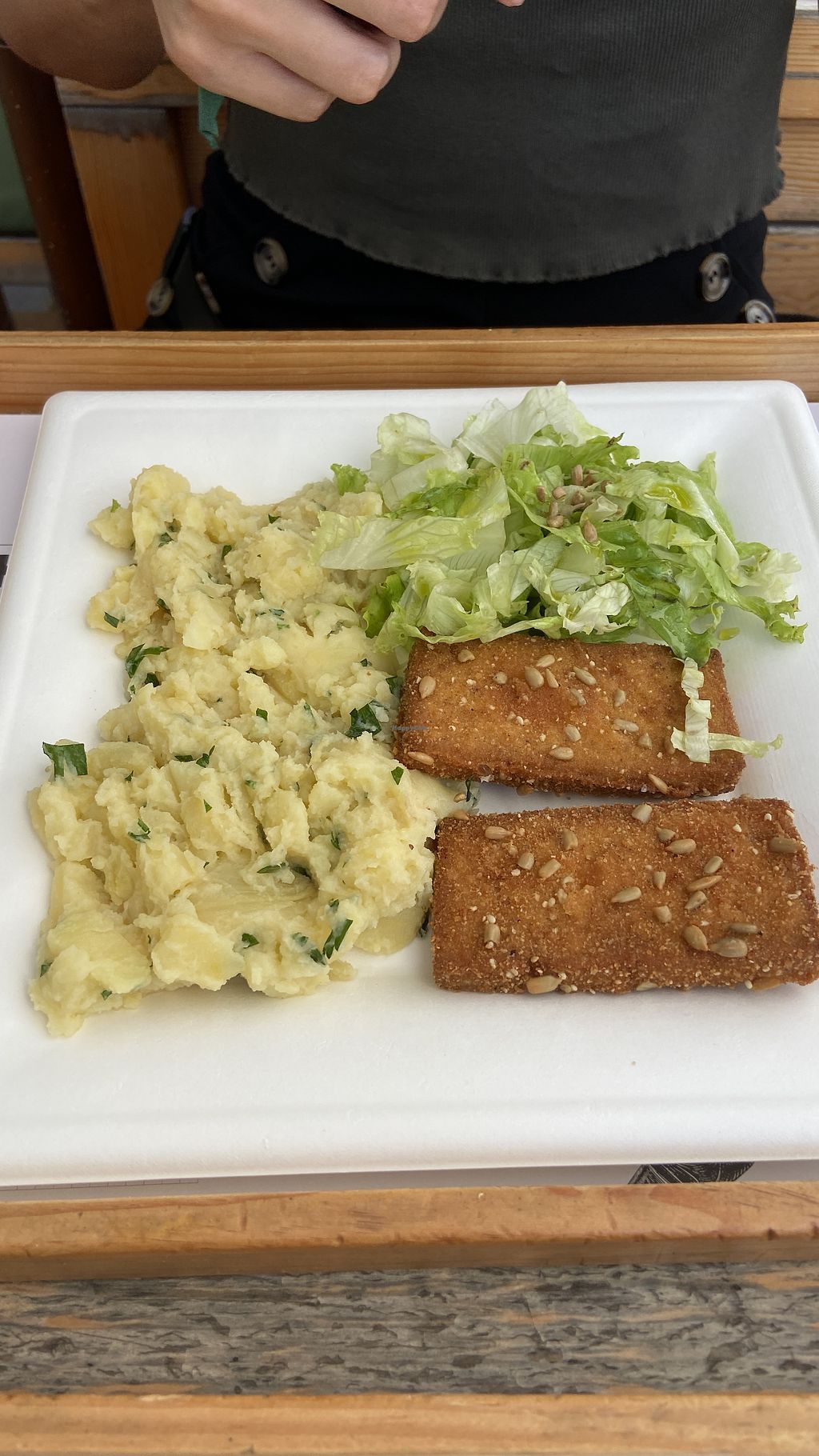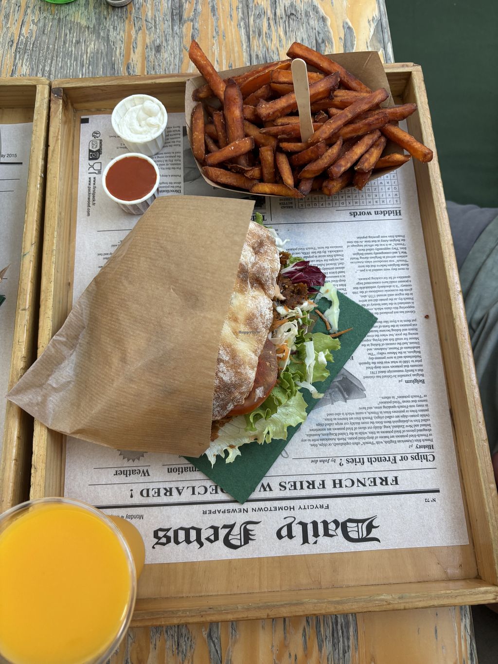 I really wanted the vegan version of a kebab but this wasn’t really that. I took the joyful kebab with the bread and it was huge. The taste was good at first but then the bread got spongey real quick from all the tomato sauce (?) and then it was a bit too much for me. Some of the ingredients are a bit off for a kebab like the corn and the tomato sauce.