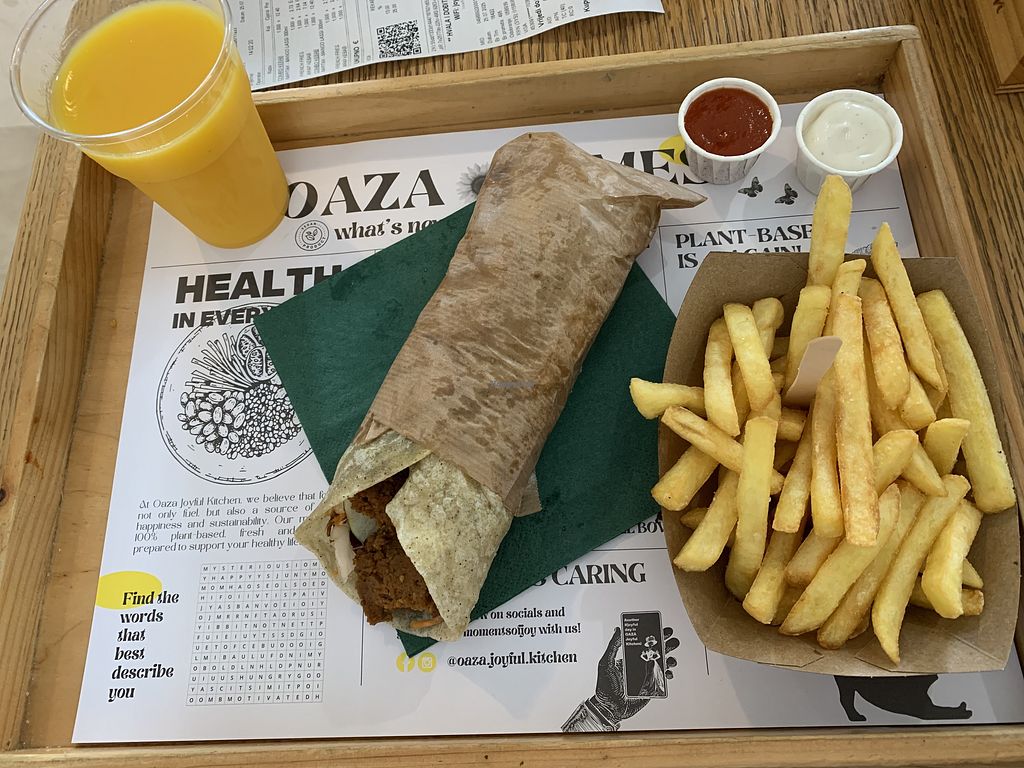 I had a vegan kebab and it was really tasty. The guys at the till didn’t give my order to the kitchen, and they were apologetic. It is self service, so you order and go and collect the food. The location is great. I had the immuno boost greece juice which was tasty.