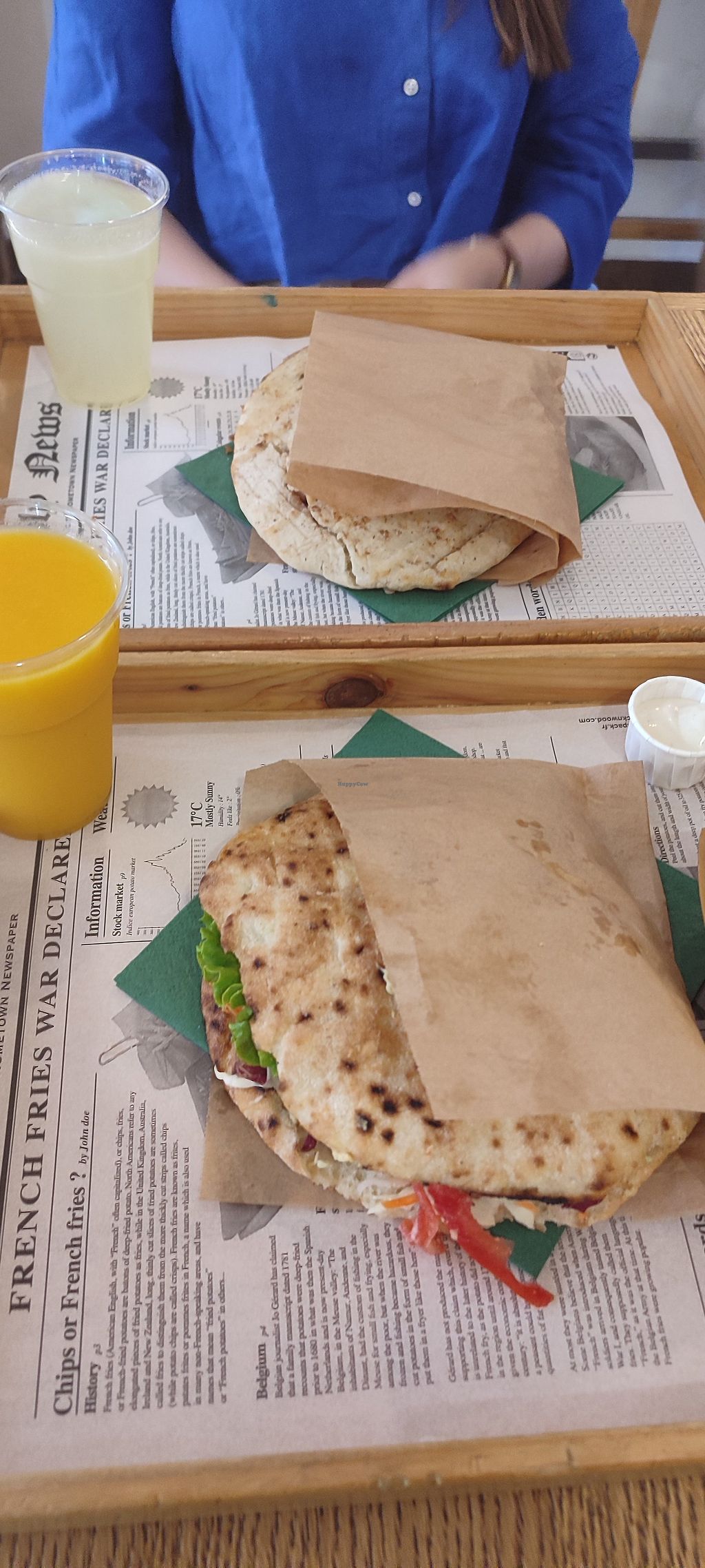 We had kebab wraps and thought they were ok but certainly nothing special. Drinks came in disposable cups although we were eating there. Even with compostable dishes I find this an unnecessary waste of resources.