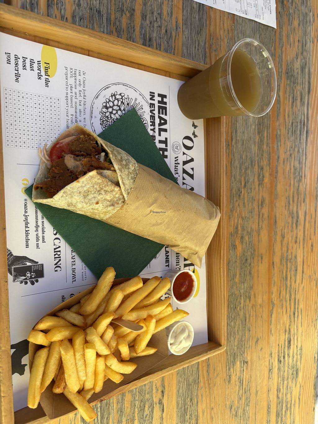 Not an easy place to find exclusive Vegan. Has a nice lunch stop with Kebob and fries . Sat outside beautiful day good stop.