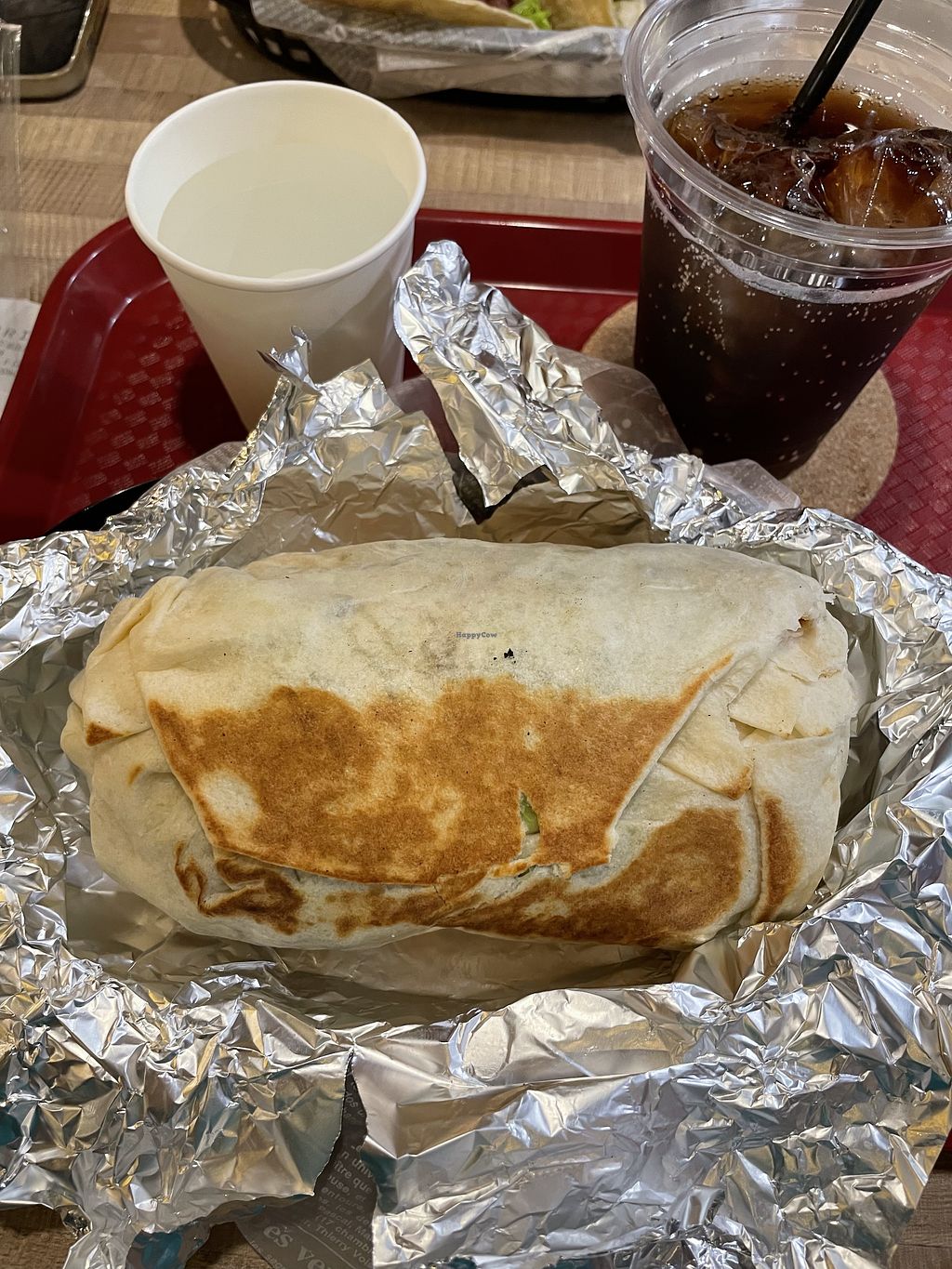 good burrito!! was super excited to find a veggie option during my lunch window in between class sessions!! got the vegetarian option, they also seemed to have a vegan option as well! (im guessing the only difference was the cheese) not usually a big fan of peppers & onions, but really enjoyed them here!!