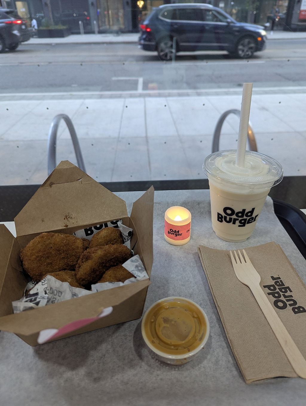 Nice staff. Recommended a few things because it was my first time at Odd Burger. It was really good. I had the Buffalo CickUn, which was a bit spicy and really good. I also had the Tater Tots which were also very good. Nice place. Will definitely come back and try some of the other meals.