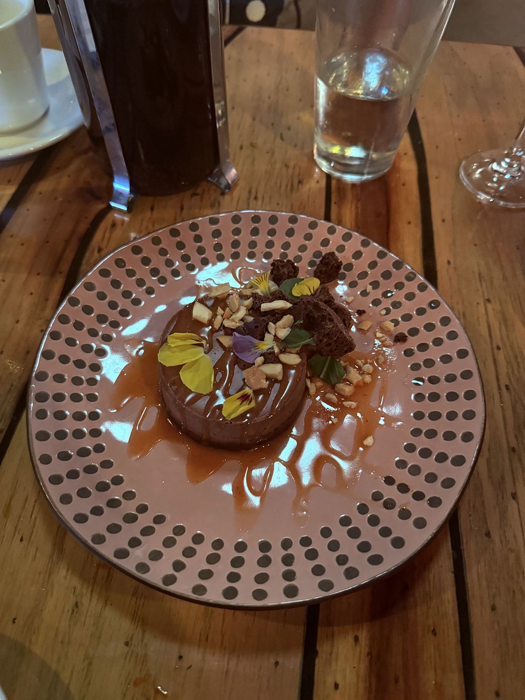 I loved having dinner here. The food is interesting, inventive, and delicious. Fully half of the small plates are vegetarian, and most can be made vegan. Vegans, you won't be having "the option." Everything was good, and though the menu changes, I'll mention the salatim platter because the za'atar seasoning on the bread was perfect. There was only one vegan dessert when we were there, a very tasty rice pudding with figs. The only weird thing is that they don't have any non-dairy milk or cream for the coffee, so if you want coffee, it's cream or black.