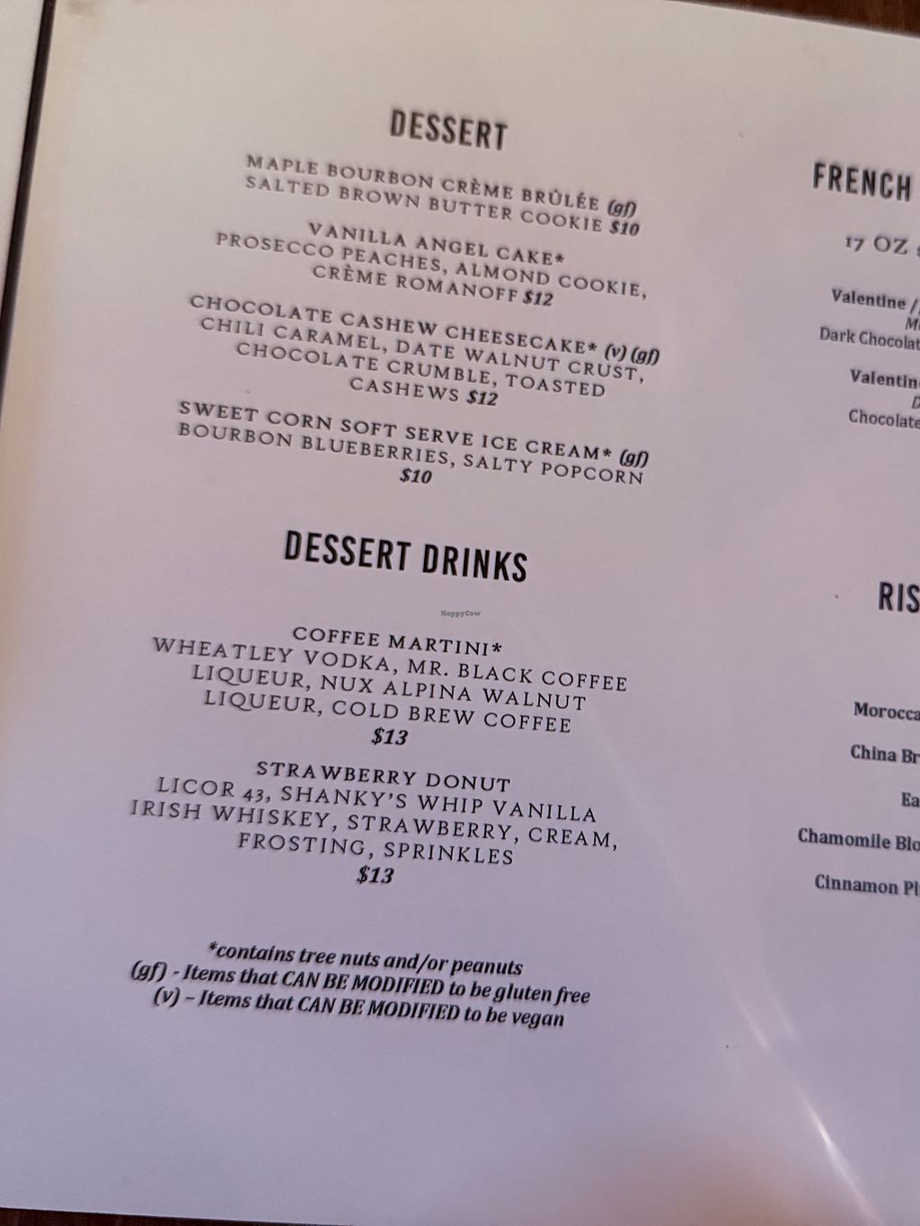 Went with family, so didn’t have high expectations but was pleasantly surprised! About half the menu is marked as vegan option, and imo about 75% of that is already vegan, so didn’t notice any major differences. My favorites were the Mala cauliflower scallion pancakes and the fried oyster mushrooms. And I was super excited to have a great vegan dessert option! Cashew cheesecake was incredible. Great cocktails too.