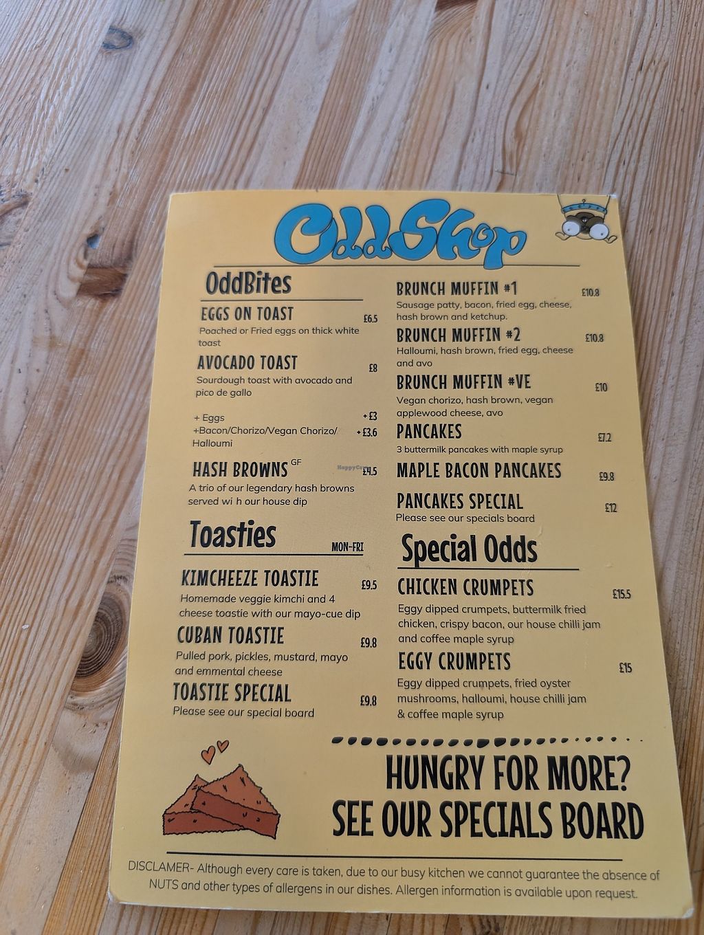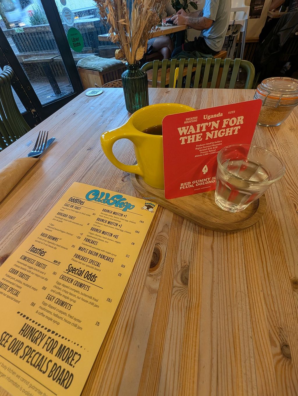 Cafe offering vegan options such as avocado toast, vegan brunch muffin, black coffee, and espresso coffee with plant-based milks. Also features single origin filter roasts and espresso beans roasted by Odd Kin. Open Mon 08:00-17:00, Tue-Sat 07:30-16:00, Sun 08:00-17:00.