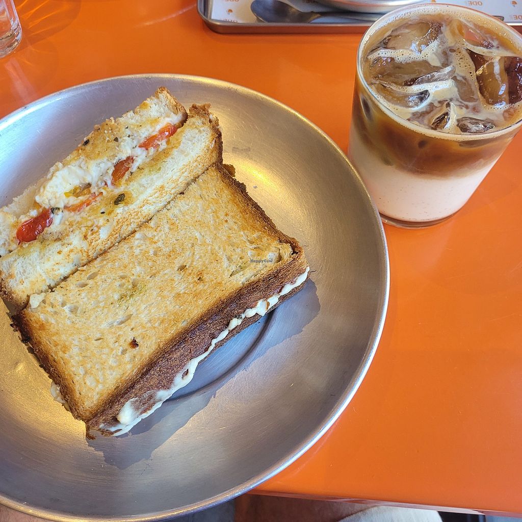 Todos cafés são com leite vegetal. O caprese é um sanduíche vegano, com queijo de castanha, e é uma delícia. Equipe muito querida.