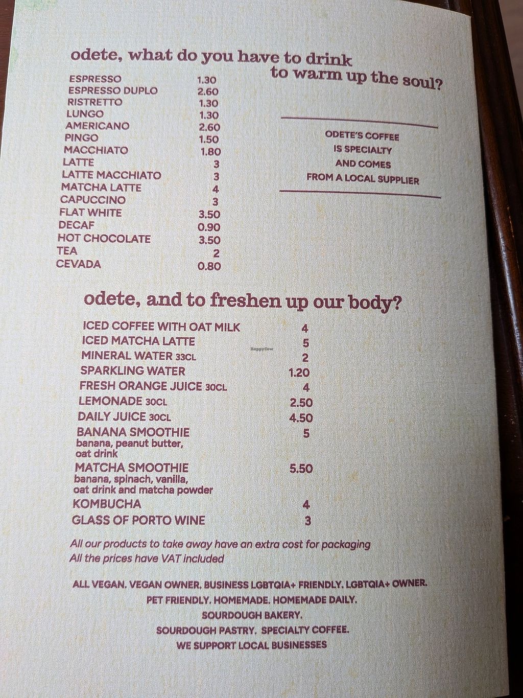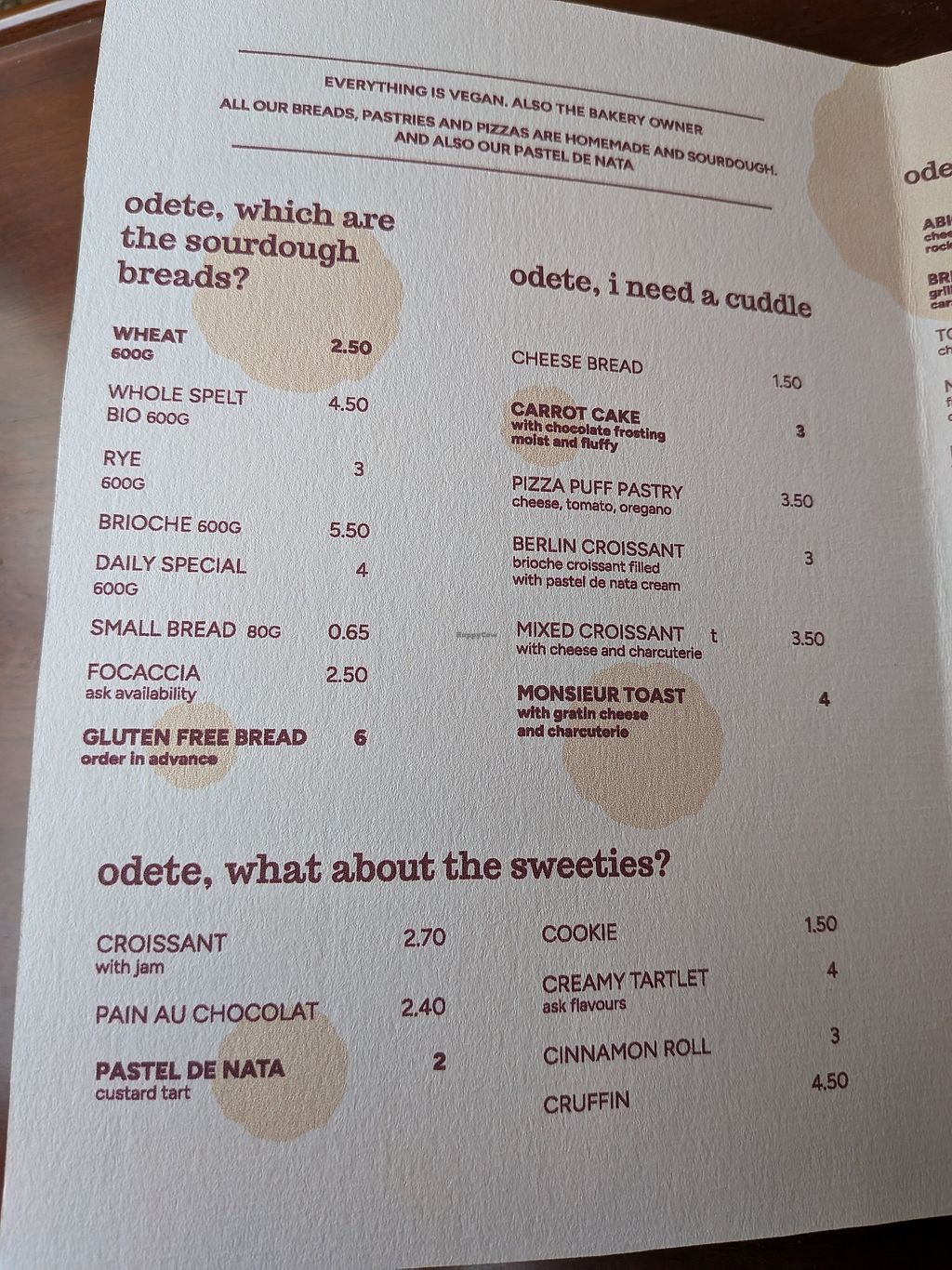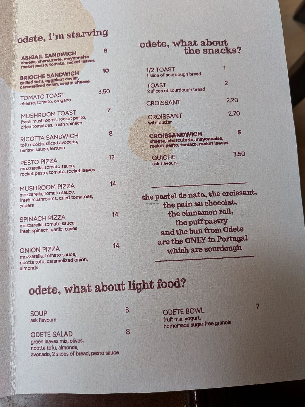 The menu