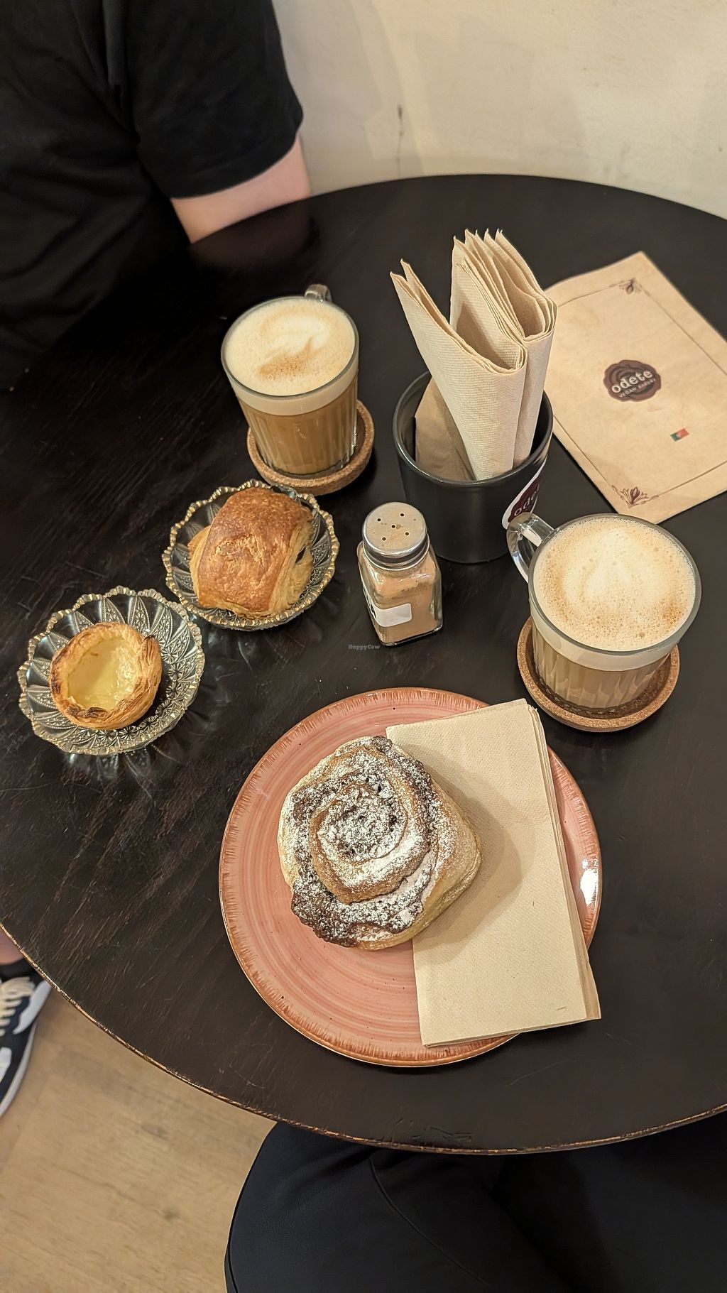 Got a chocolate croissant, orange juice (freshly squeezed) and a pastel de nata and cookie takeaway. Everything was A , in particular, best vegan pastel de nata I have tried ! Highly recommended! You won’t be disappointed!