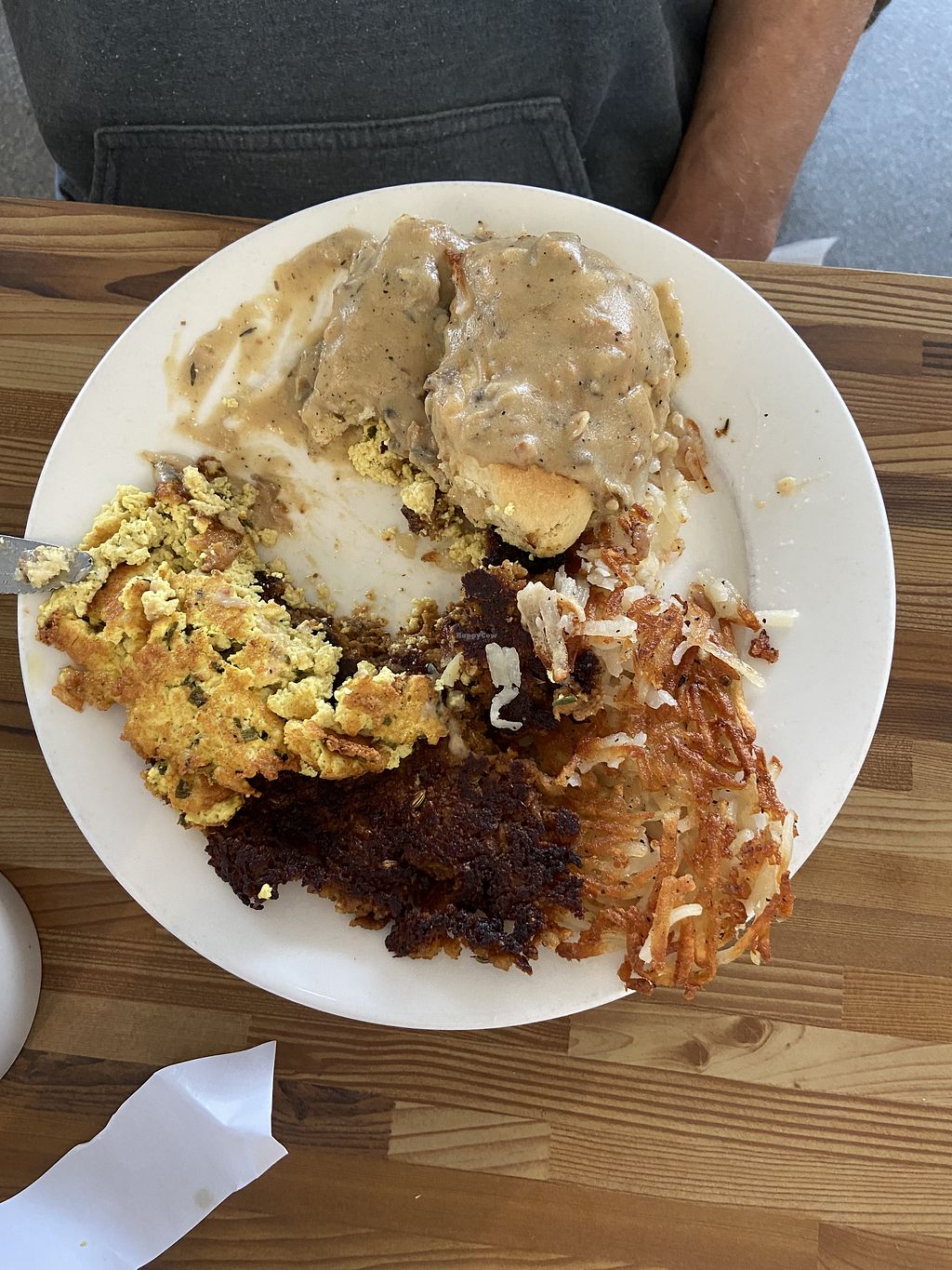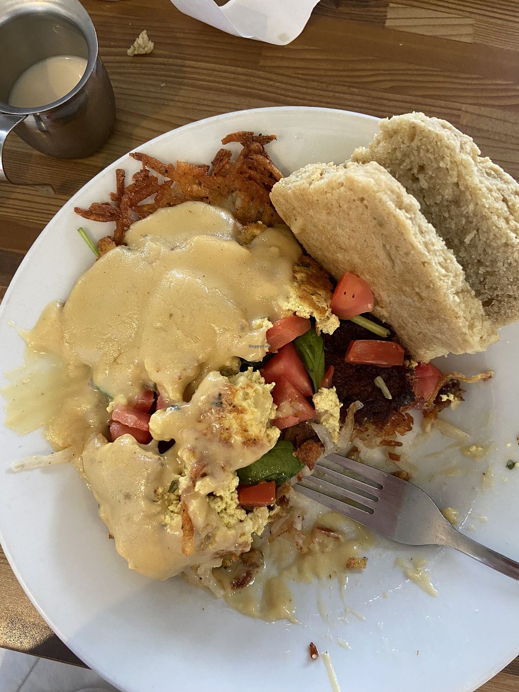 I love the food here! They offer an excellent version of my favorite breakfast dish: Biscuits & Gravy! Also loved their vegan chicken & waffles and their Nashville Hot Sandwich! great vegan breakfast at this place!