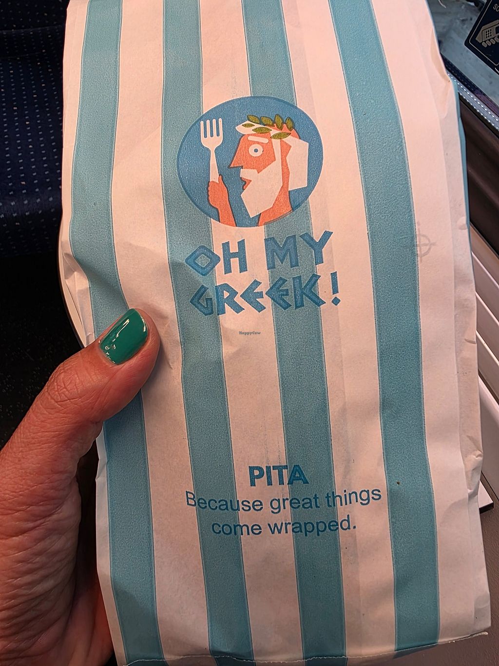 Serves meat, vegan options available. A chain take out located in the basement of the train station that offers Greek fast food such as gyros, koulouri sandwiches, and salads with soy meat or falafel for vegan options. Standing tables only. Open Mon-Fri 7:00am-10:00pm, Sat 9:00am-10:00pm, Sun 9:00am-9:00pm.