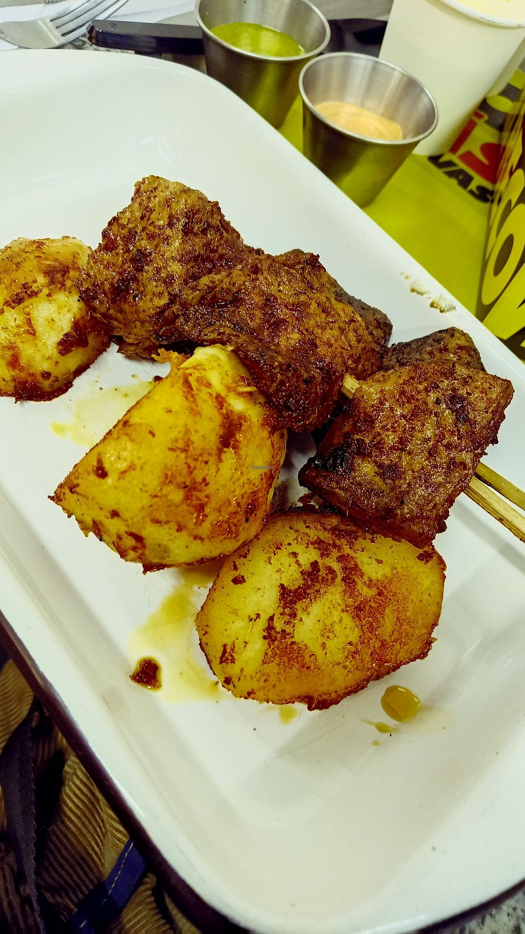 We had the skewers with the potatoes and the ones with the pasta (with the Huancaina sauce) and I cannot recommend it enough! We’re definitely going back! Also, portions are massive.