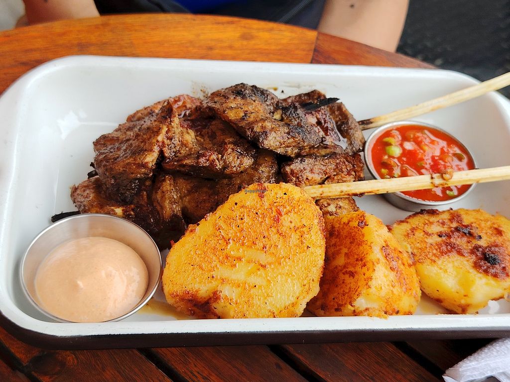 Deliciosos los anticuchos, se veían como carne, sabían a carne, olían.. puedes llevar a alguien no vegano y perfectamente engañarlo 🙊