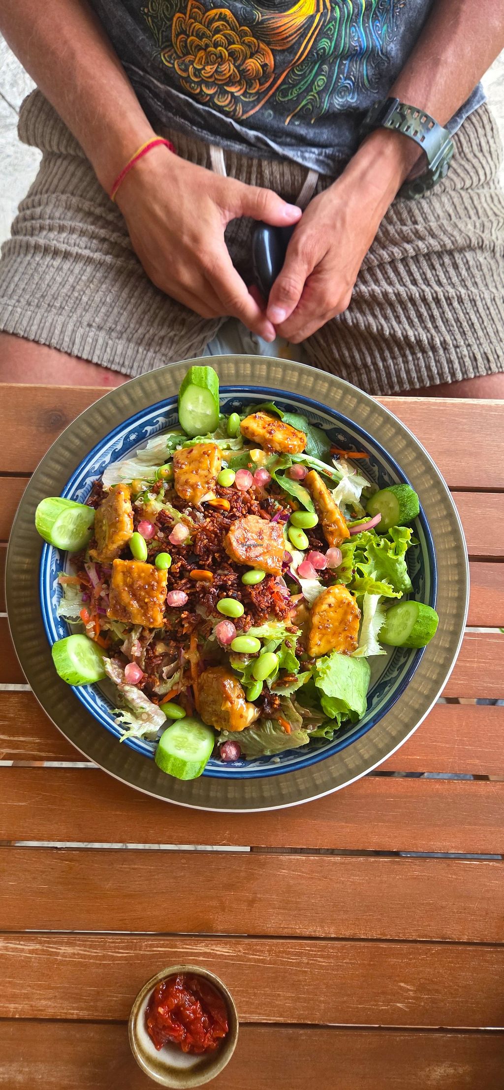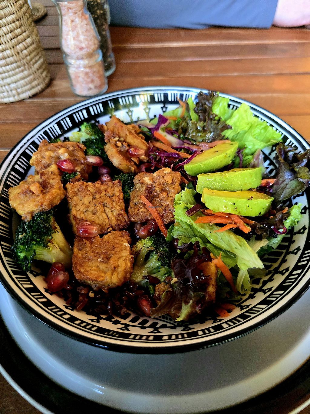 Beim ersten Versuch eines Besuchs gab es leider keinen Platz mehr. Es gibt aber leider auch nur ein paar Tische. Wir wollten es aber unbedingt testen. Wir kamen zwei Tage später nochmal und fanden einen Platz. Bei diesem Besuch wurden wir nicht enttäuscht. Es gibt eine gute Auswahl an veganen Gerichten mit Proteinen. Wir hatten einmal den Tempeh & Crispy Rice Salad und den Teriyaki Tempeh Wrap. Beides hat fantastisch geschmeckt. Der Mix aus Sauer, Süß und bitter mit knusprigem Reis hat mir sehr gut gefallen bei dem Salat. Die Bedienungen waren sehr nett und aufmerksam. Man bekommt kostenlos Wasser mit Zitronengeschmack. Leider kann man nur bar bezahlen, das ist etwas schade.