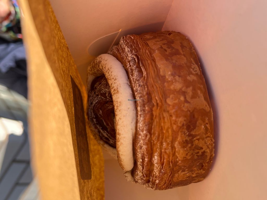 Fully vegan bakery selling a range of both savoury and sweet pastries. I had the garlic and rosemary bun and the cinnamon swirl. Both were amazing but the garlic bun was a true standout - better than any non vegan pastry I had back in the day! Can’t wait to go back and try something different!