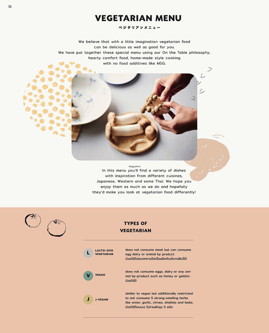 Serves meat, vegan options available. Japanese Western restaurant located in the Model One Bangkok mall. The menu includes a dedicated vegetarian and vegan section with clearly labeled vegan options. Vegan dishes include inari sushi maki, nasu maki, hiyayakko avocado tofu, quinoa avocado bowl, capellini spicy mixed mushrooms, kitsune tofu udon, balanced tofu bowl, nasu basil don, and tofu teriyaki black olive fried rice. Open Mon-Sun 10:00am-10:00pm. The hours are for One Bangkok mall, the restaurant should be the same.