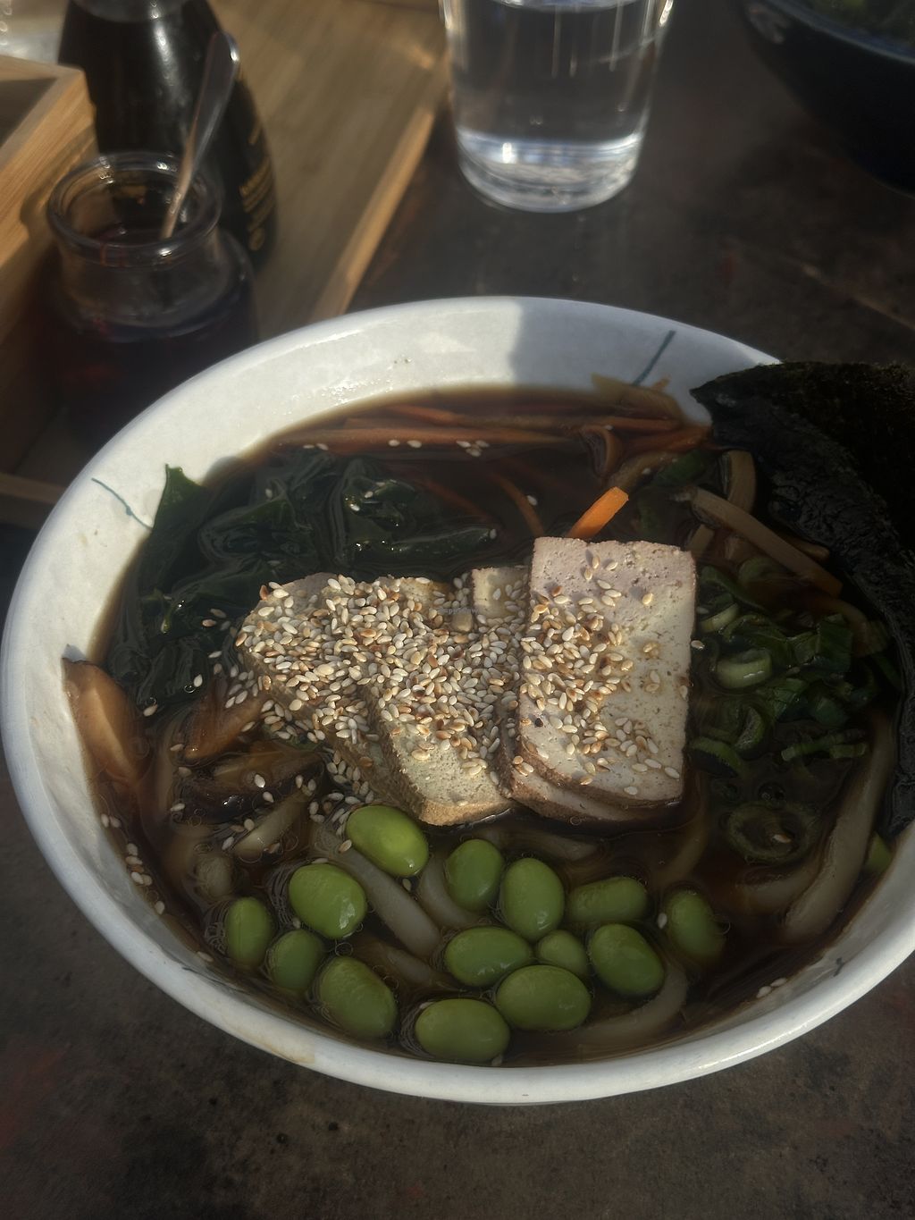 They have 2 different vegan ramen, for starter you can take edamame. Very good iced tea and kind personel.