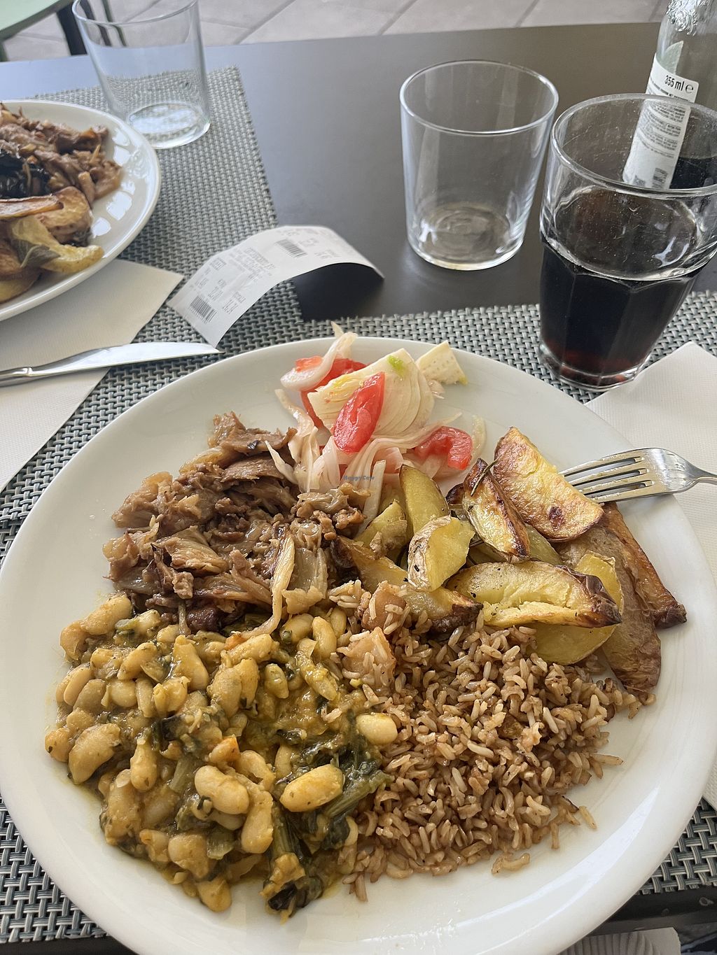 Ask to be seated, they have a few tables outside as well as inside. For lunch, they serve a large buffet, with warm or cold options. I opted for ceci e fagioli con friarielli, tempeh con peperoni, and fried aubergines. All and all a very good, simple, honest meal that tastes like home made.