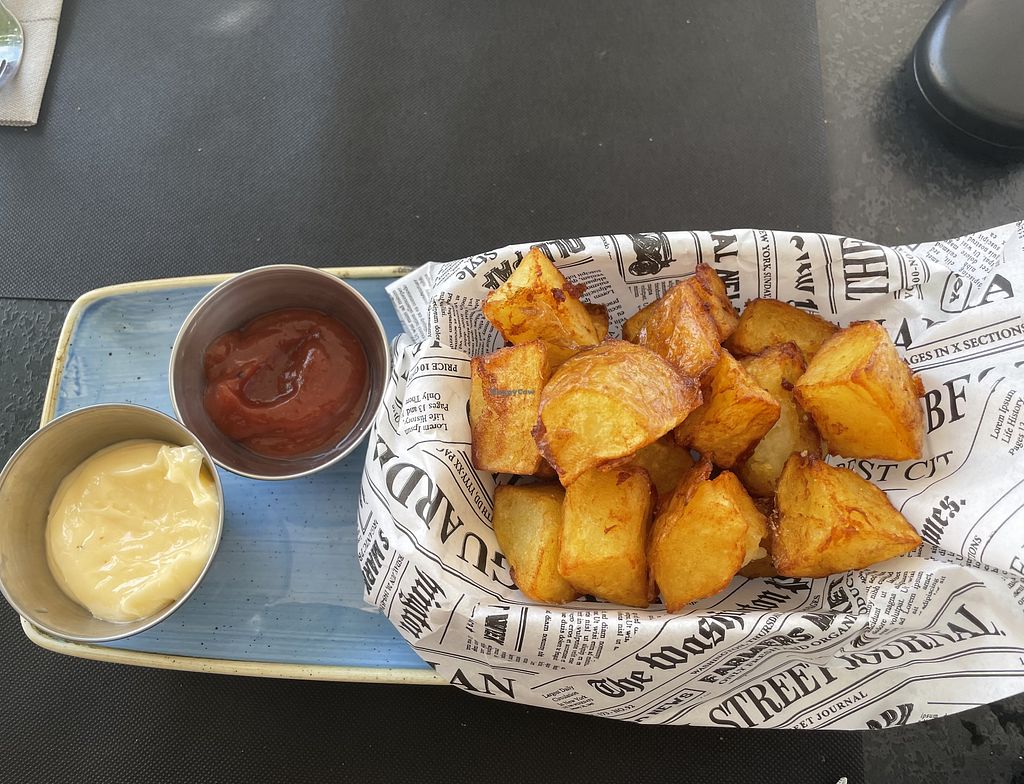Read moreLas bravas y el pan muy buenos. Los raviolis no noté el gusto del seitán.