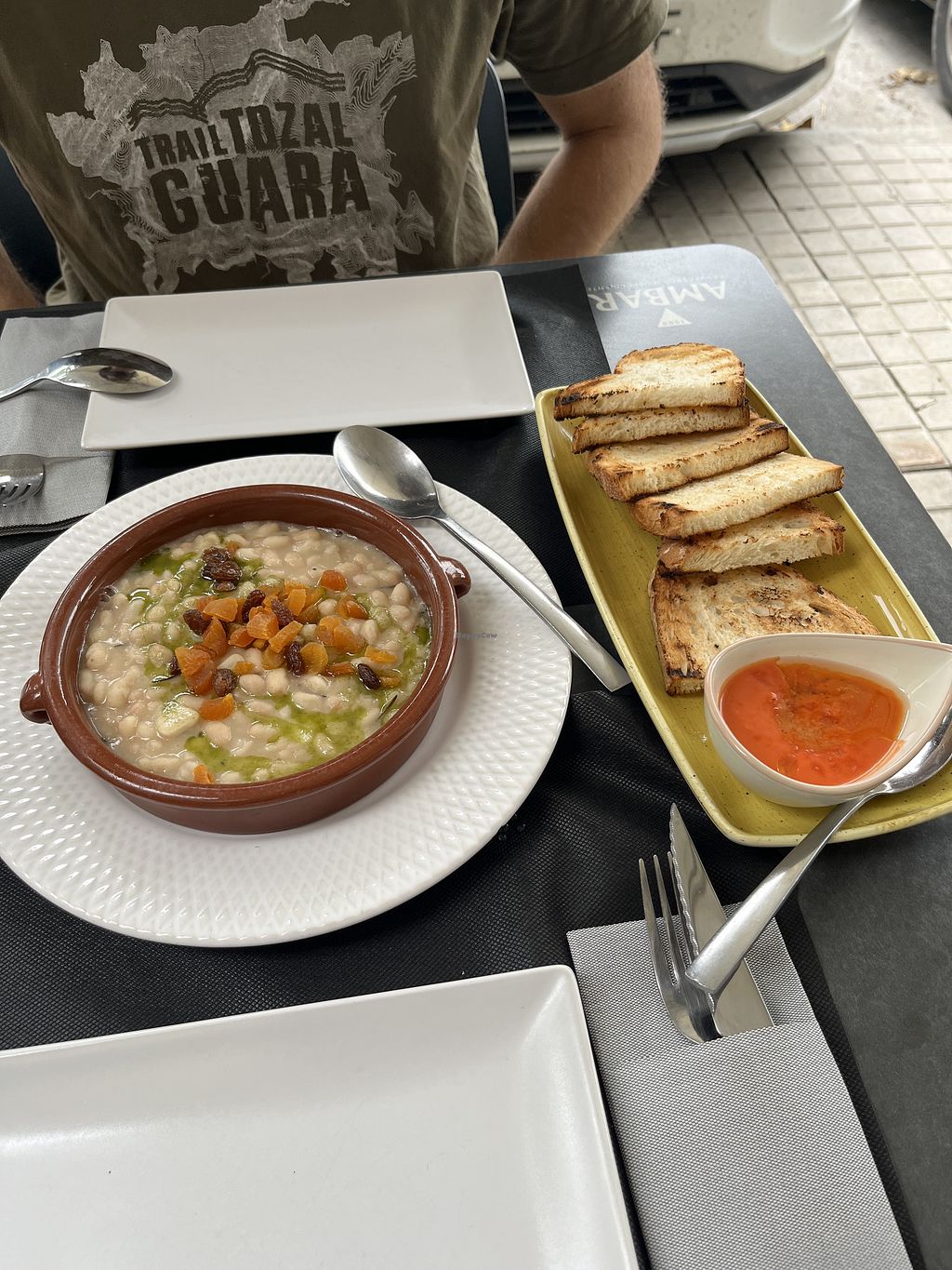 Los fesolets con ajo, frutos secos y aceite de albahaca estan realmente deliciosos y los recomiendo al 100%. La pasta sí que es verdad que le falta algo de sabor, me decepcionó un poco. Faltaría que tuvieran algun postre vegano. Está bien para apañar una comida vegana si estás por Aínsa.