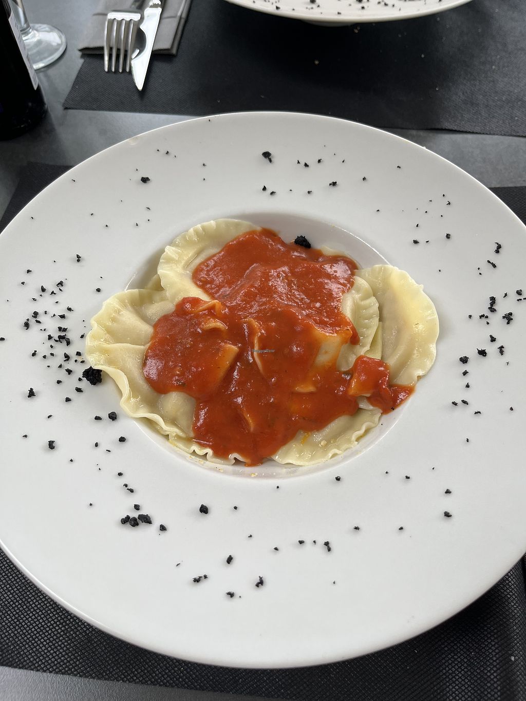 Me encantan las opciones veganas especialmente los raviolis con seitan