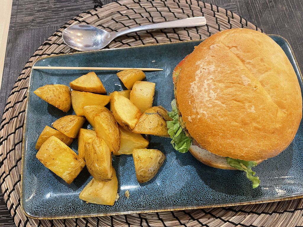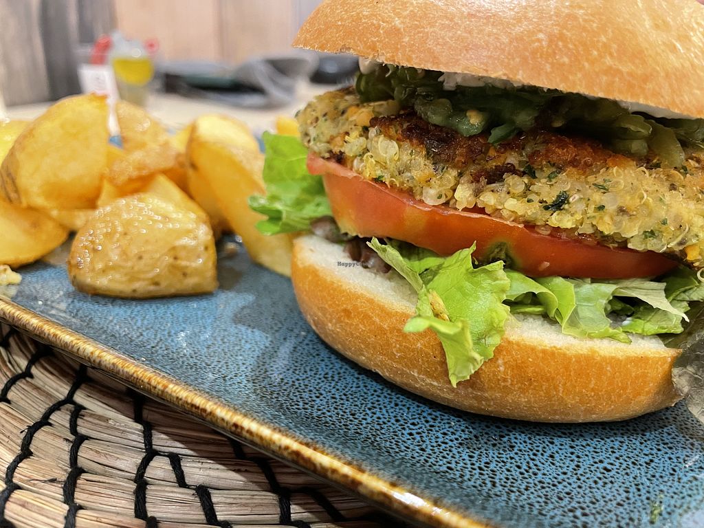 Serves meat, vegan options available. Restaurant offering vegan dishes including a lentils dish, ravioloni and a burger. During high season may need to make a reservation. Open Mon 10:30-22:30, Tue 10:30-16:00, Thu-Sun 10:30-22:30.