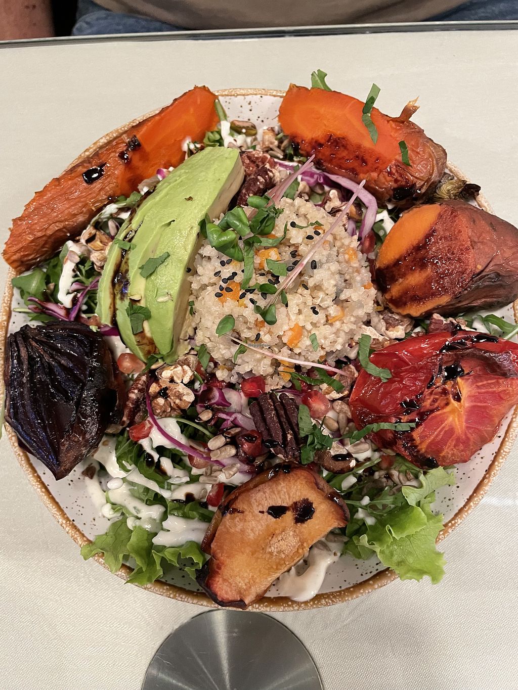 Outdoor dining on the steps is really a nice experience and tucked away from the crowds in Chiado. The Roasted vegetable quinoa salad was excellent!