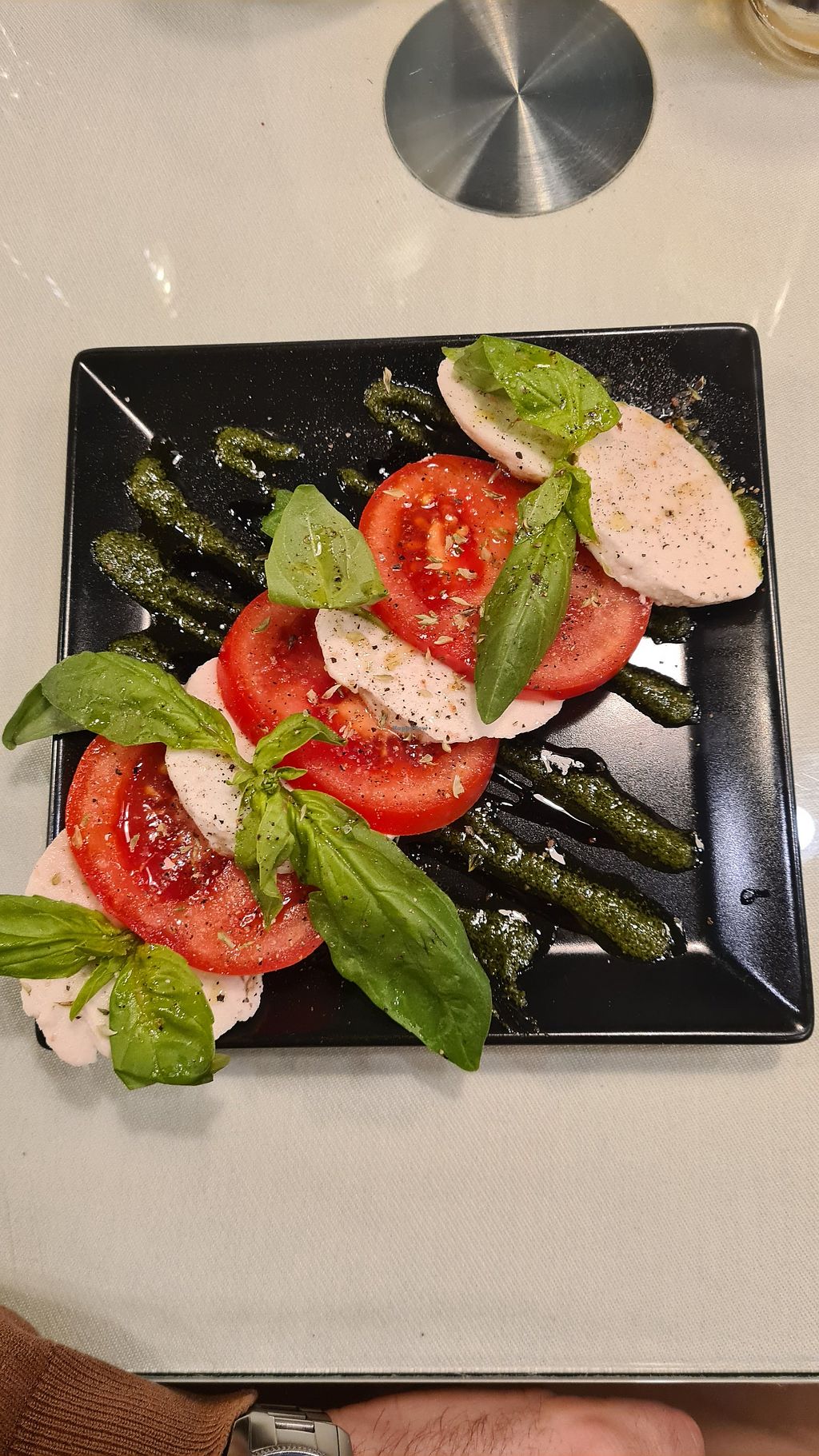 I had the risotto, which was very tasty and creamy, I loved it! A big glass of good red wine, just the house wine was delicious. I had the rice desert after the risotto which was also super tasty. Very special tastes, not standard. Staff was super friendly. Atmosphere is not my style, in my opinion it could be more cozy. But there is also a possibility to sit outside on their terrace. Good price; meal, desert and wine for 21 euros.
