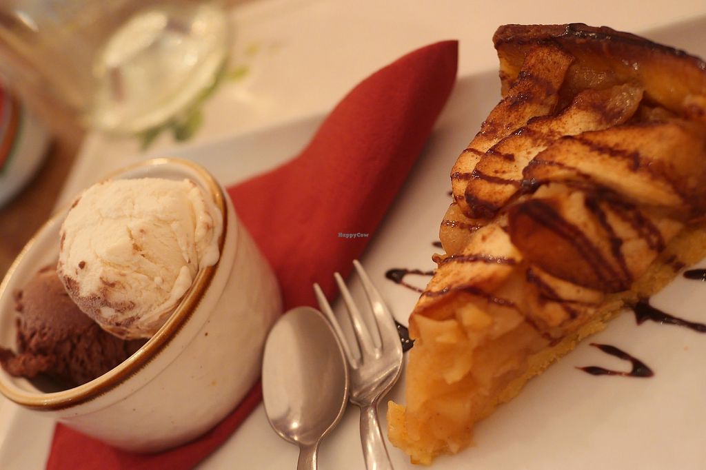 Lots of vegan options that are clearly marked on the menu, as well as 3 desserts. Good place to go to as a vegan with non-vegan company. Really good food, nice ambiance and a good price!
