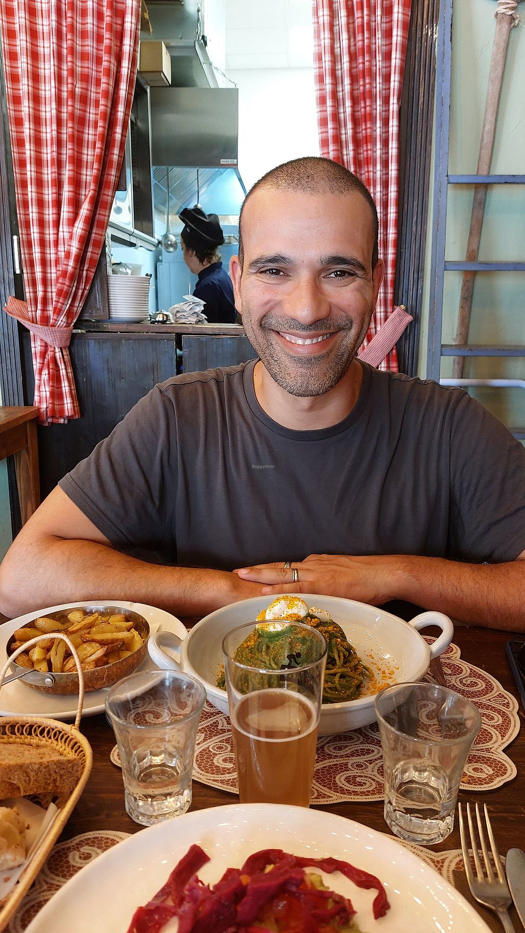 Nice atmosphere- it’s a vegetarian restaurant with several vegan options (they can also “veganize” some dishes). There’s also a vegetables shop inside.