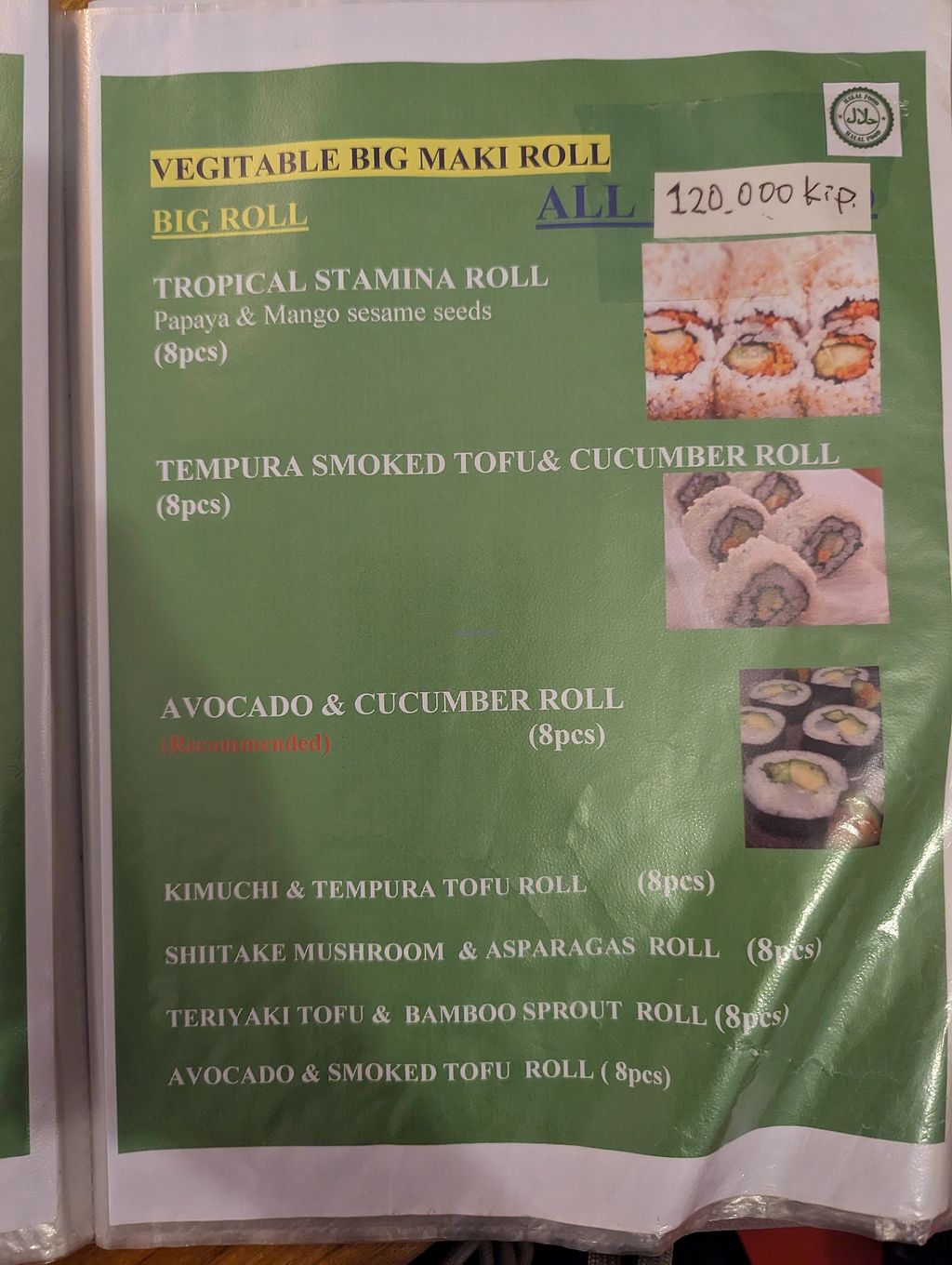 Delicious food in the restaurant. Especially sushi. Cooking is not fast. Yes, the restaurant is a little expensive, like all Japanese restaurants in Laos.