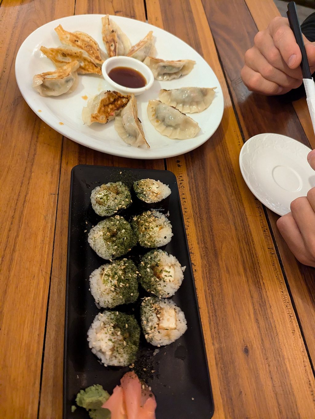 Las gyozas estaban muy buenas, tienen.un apartado en el menú de comida vegetariana. Bien de precio.
