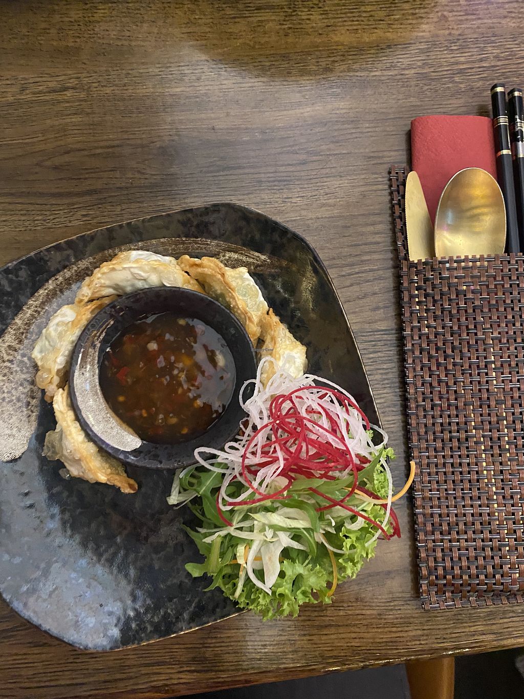 Serves meat, vegan options available. Vietnamese bar and restaurant offering vegan choices such as vegetable maki rolls, tofu bowl and noodle dishes with tofu. Open Mon-Sun 11:30-22:00.