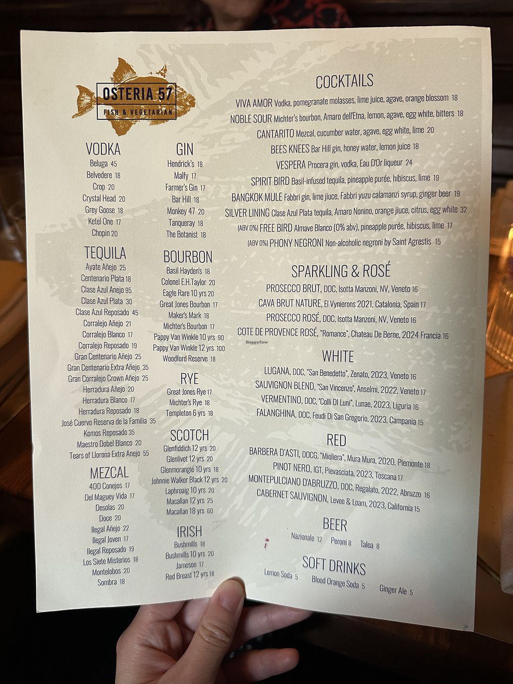 Osteria57 had a couple of vegan starters and one vegan main course. I ordered the harvest salad which was small to medium-sized for $19. No protein add-on options. The main course vegan option was pasta without protein. The drinks were fantastic, albeit expensive - $16 each. Service was slow despite the fact that the staff required we order all meal items at once.