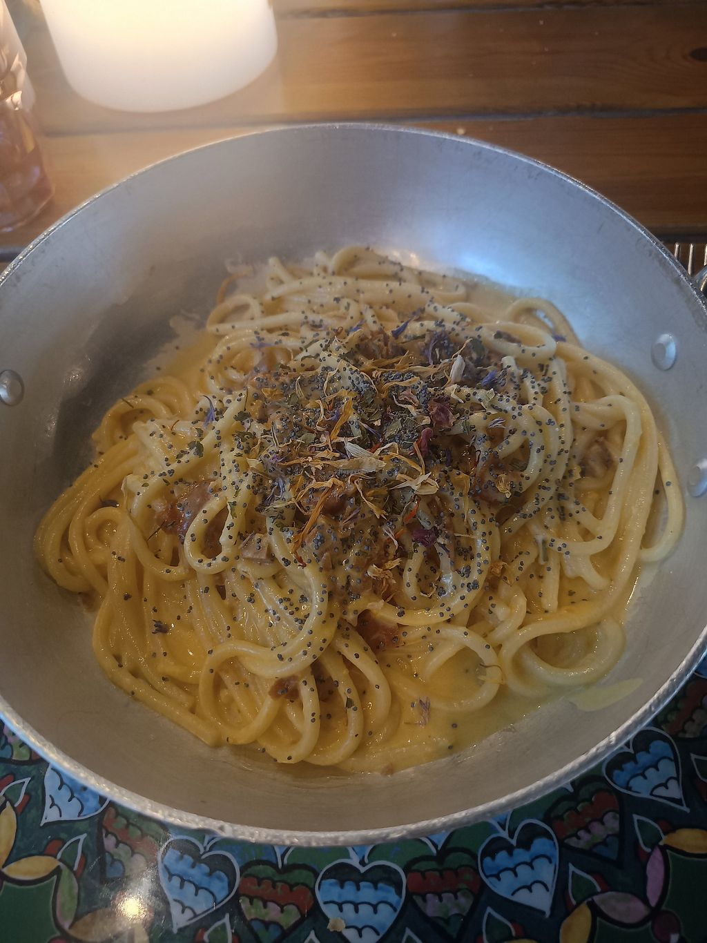 Read moreVegan menù with wide choice of starters, pasta dishes and "meat" dishes. We had mixed starter and the carbonara, both delicious. They also have a whole gluten free menu.