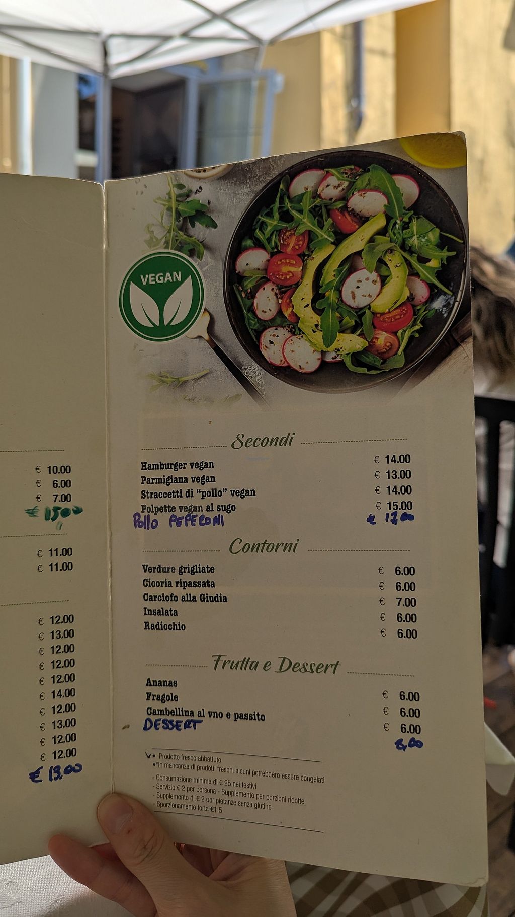 Siamo stati molto bene! Personale gentilissimo e disponibile per domande anche "tecniche". Hanno un menù vegano separato da quello onnivoro che comprende piatti tradizionali come cacio e pepe, amatriciana,a anche tagliata di seitan ecc. Hanno anche diversi piatti senza glutine cucinati in una sezione a parte (un parente del gestore è celiaco quindi penso rispettino le linee guida).