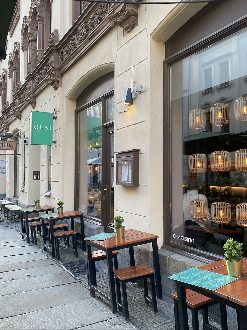 All vegan place. Outside seating. Nice staff. Can only use a credit card over €80 under then it’s cash only? That was weird. Clean bathroom. My meal had 2 different color hairs in it. A long black one, and a shorter white one. I soldiered on. My wife would have stopped eating. That’s why I docked a star.