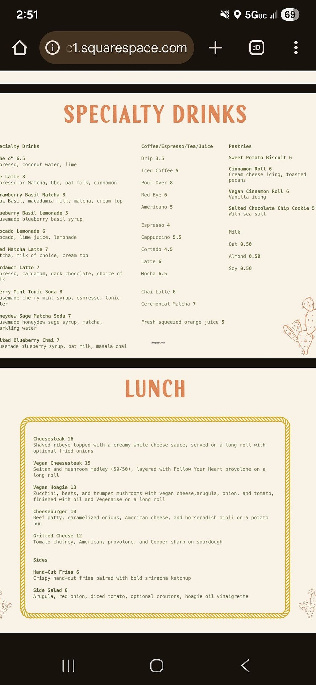 Serves meat, vegan options available. Breakfast and lunch cafe serving vegan options including a vegan cheesesteak, vegan hoagie, smoked black bean toast, sweet potato hash, and more. Open Mon-Fri 8:00am-4:00pm, Sat-Sun 9:00am-4:00pm.