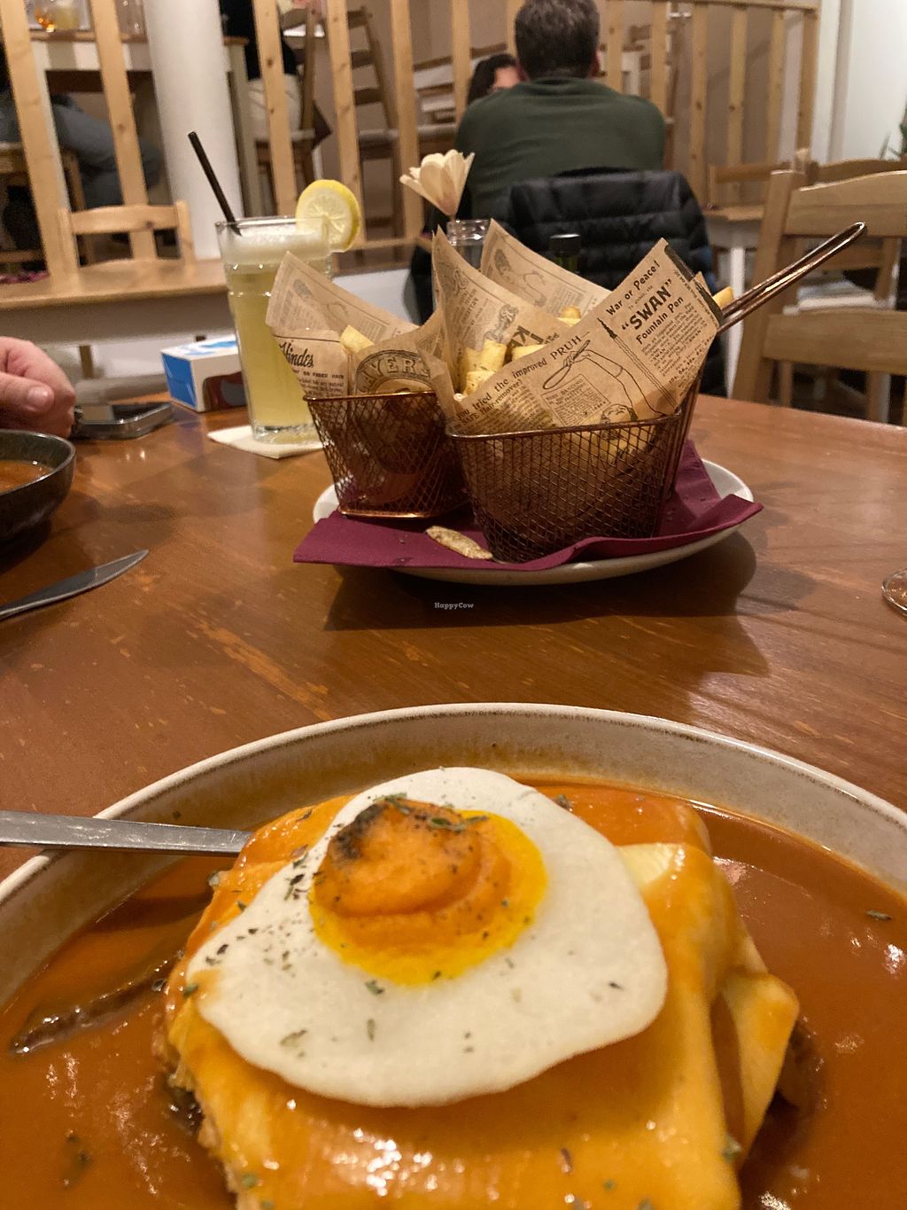 I had been trying to go to this place for a few years now but every time I had been to Faro it never quite happened but... in January I got to go and it didn’t disappoint! The food is a mix of traditional Portuguese comfort food and other more known world foods like Banoffi Pie Pudding! We had the Francesinha and it was so amazingly good! It came with chips/ fries and the sauce was generous and plentiful! The selection of dishes were good but all three of us ended up having the same! Also the selection of wines and soft drinks were really good. I will have to go back to try the rest but so far this is one of the best vegan places in Faro! The staff were super friendly and attentive. Nice relaxed atmosphere and very welcoming. Arrive hungry because the portions are healthy!!! Loved this place ❤️